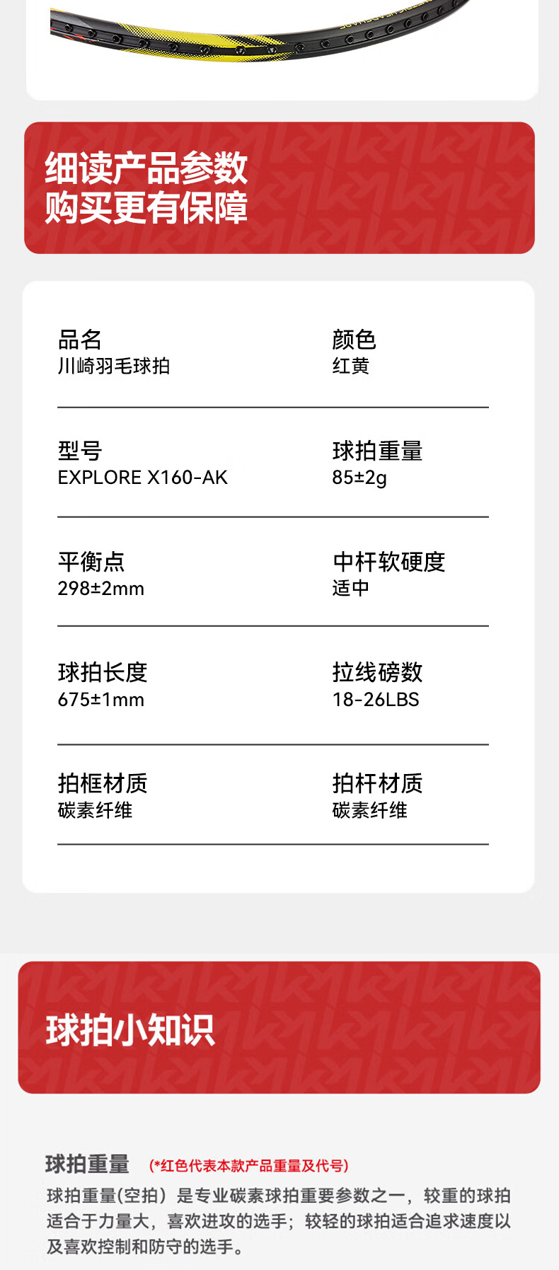 商品名称:【京东/顺丰/德邦配送】KAWASAKI/川崎羽毛球拍单只EXPLORE X160-AK