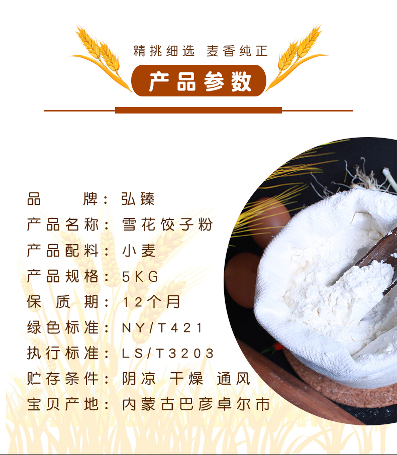 商品名称:弘臻河套地区雪花饺子粉5kg