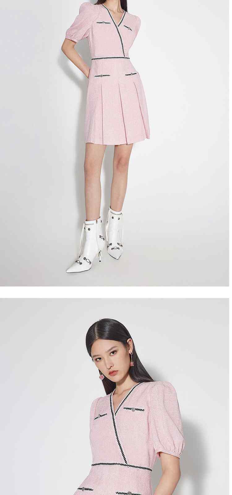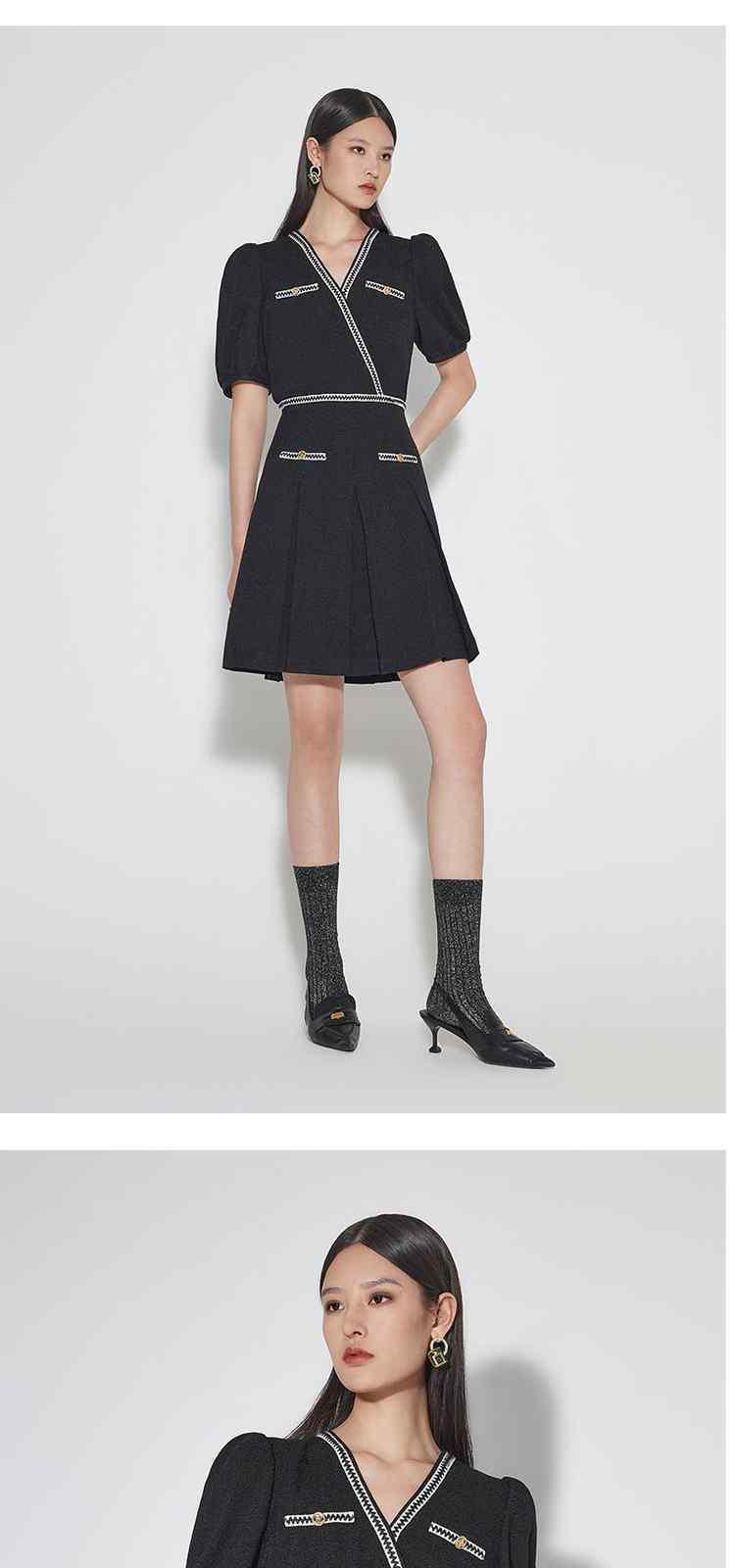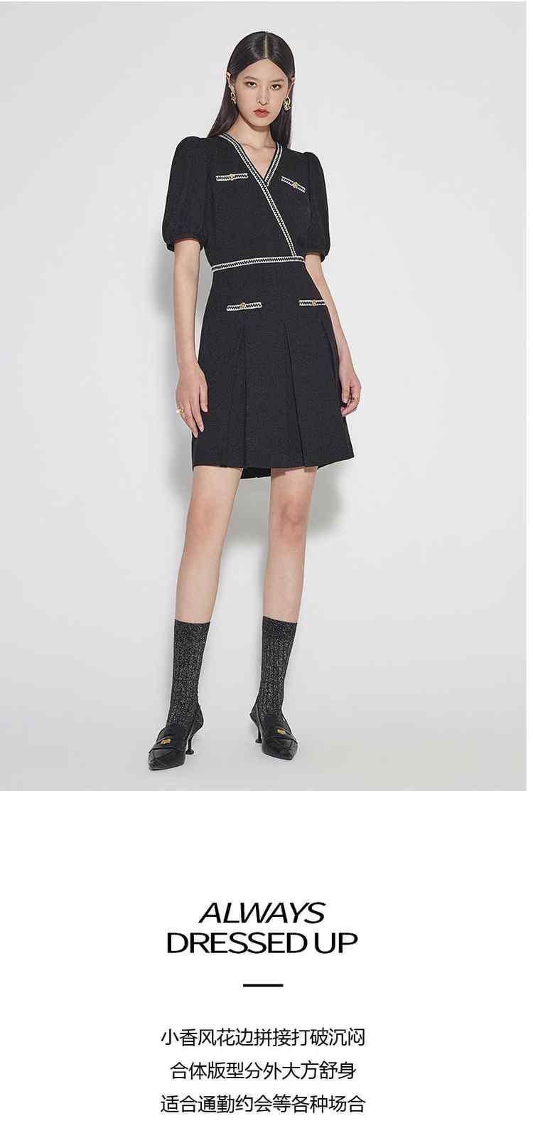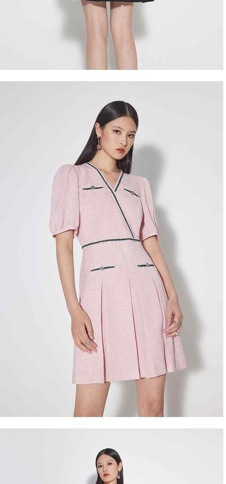 商品名称:春装 设计感泡泡袖花式薄感小香风连衣裙 282703