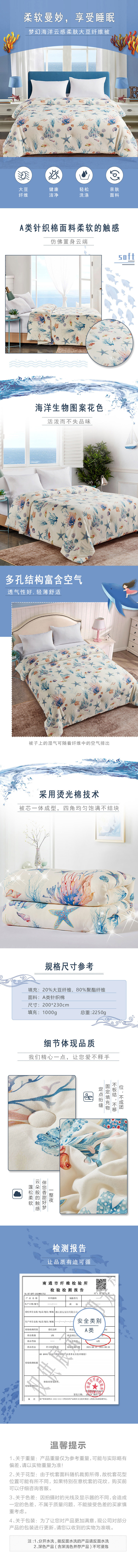 商品名称:GRACE/洁丽雅梦幻海洋云感柔肤大豆纤维被200*230cm 2250g
