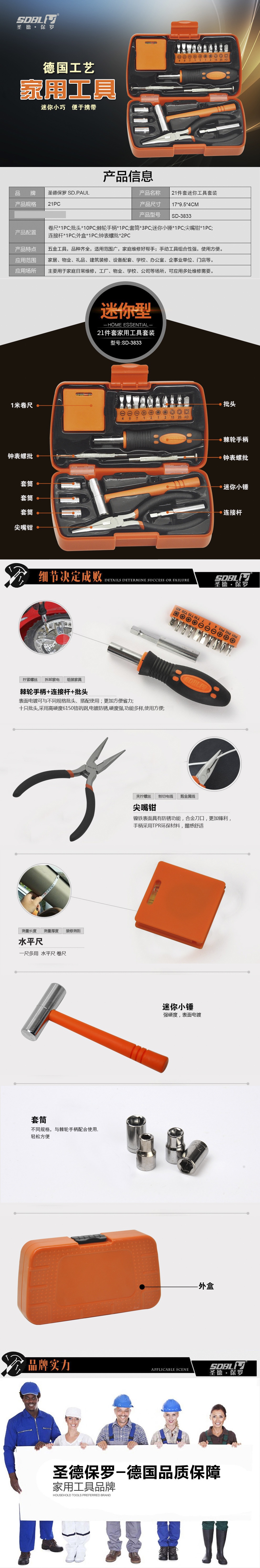 SDBL/圣德保罗21件套迷你工具套装SD-3833