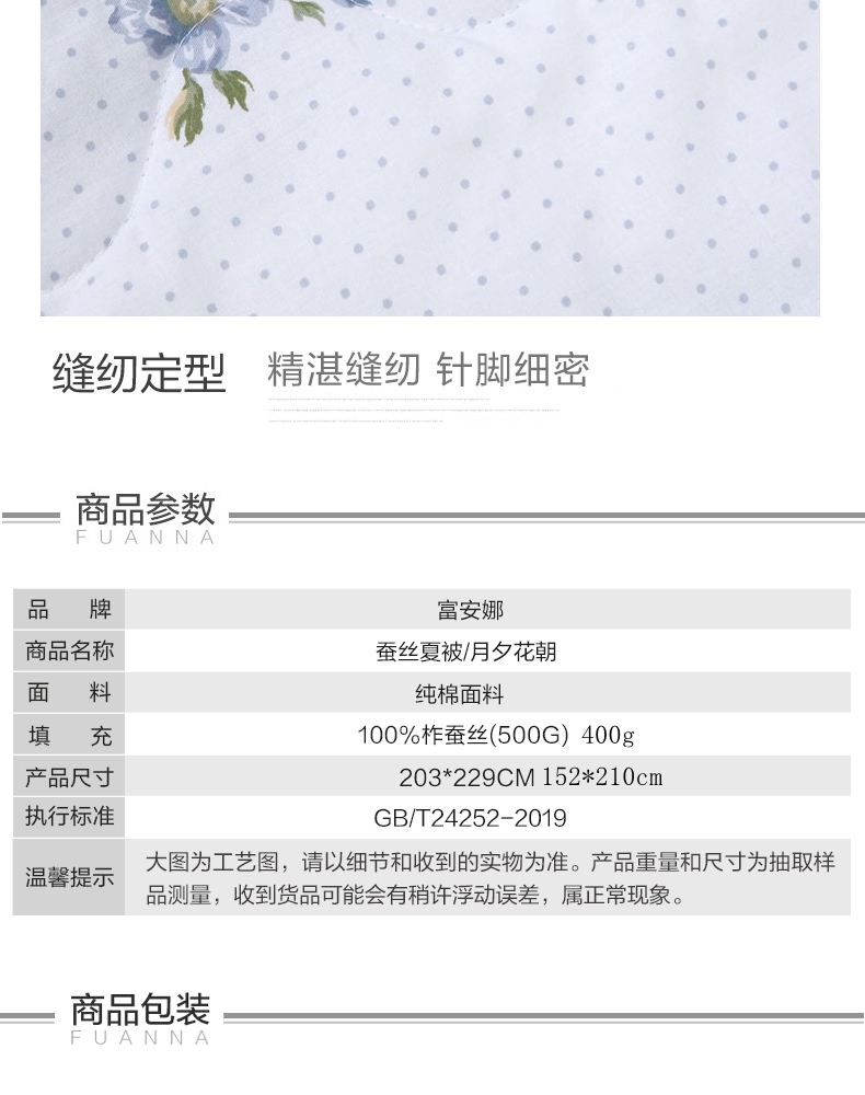 商品名称:【京东配送】FUANNA/富安娜月夕花朝蚕丝夏被