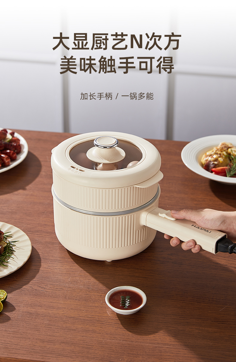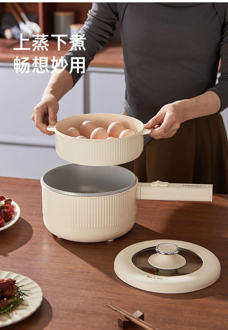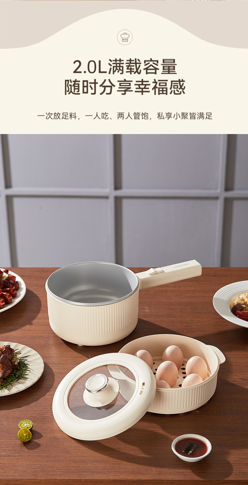 HAIPAI/海牌2升带蒸屉手持式电煮锅HP-D720B