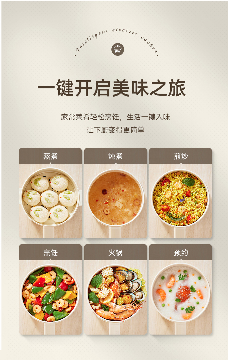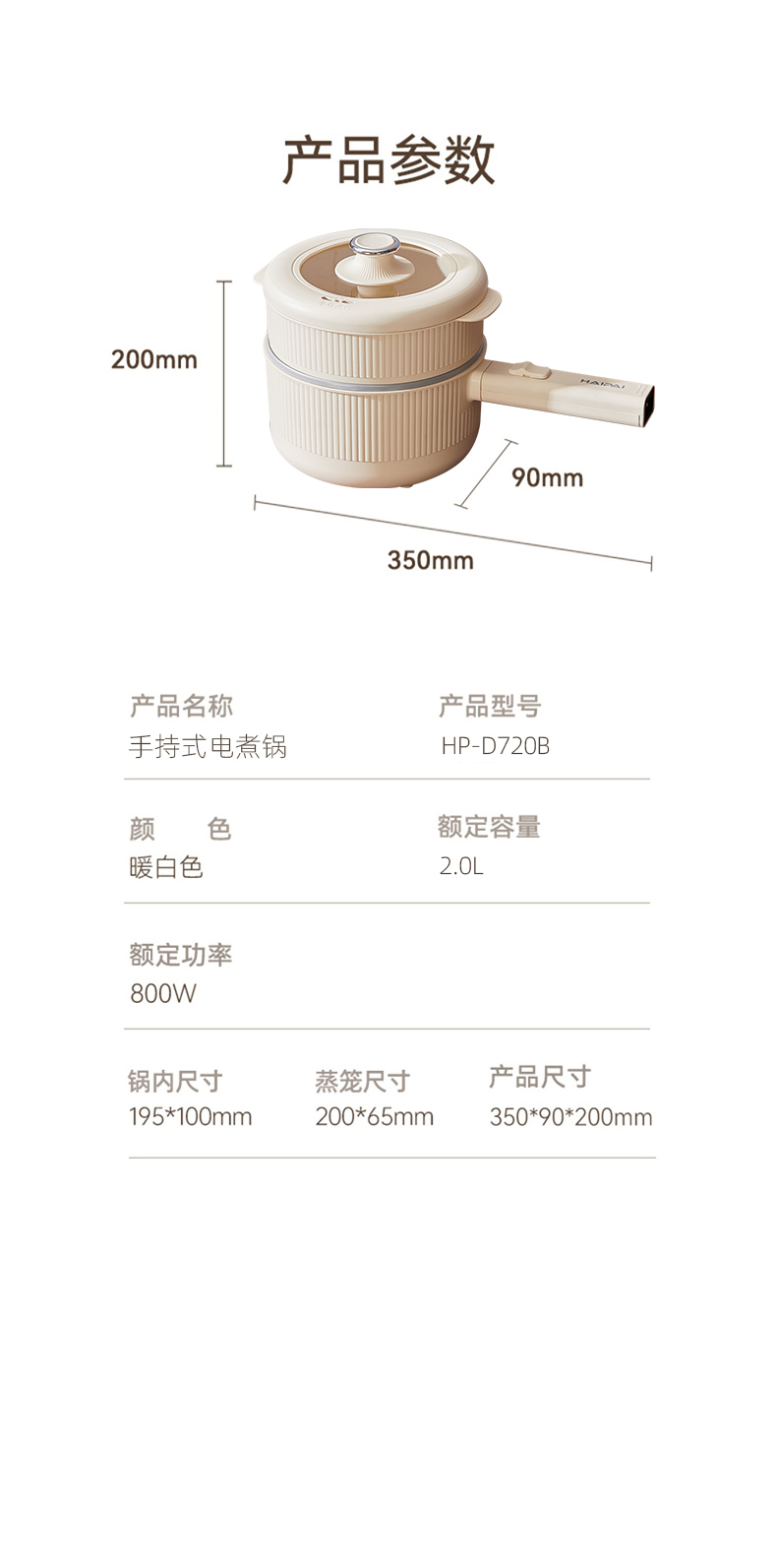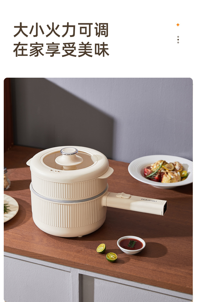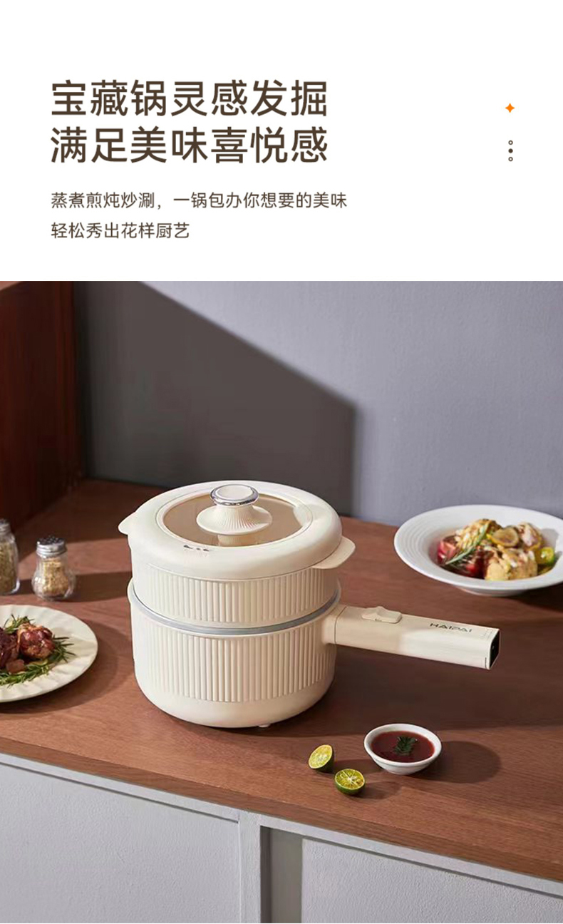 商品名称:HAIPAI/海牌2升带蒸屉手持式电煮锅HP-D720B
