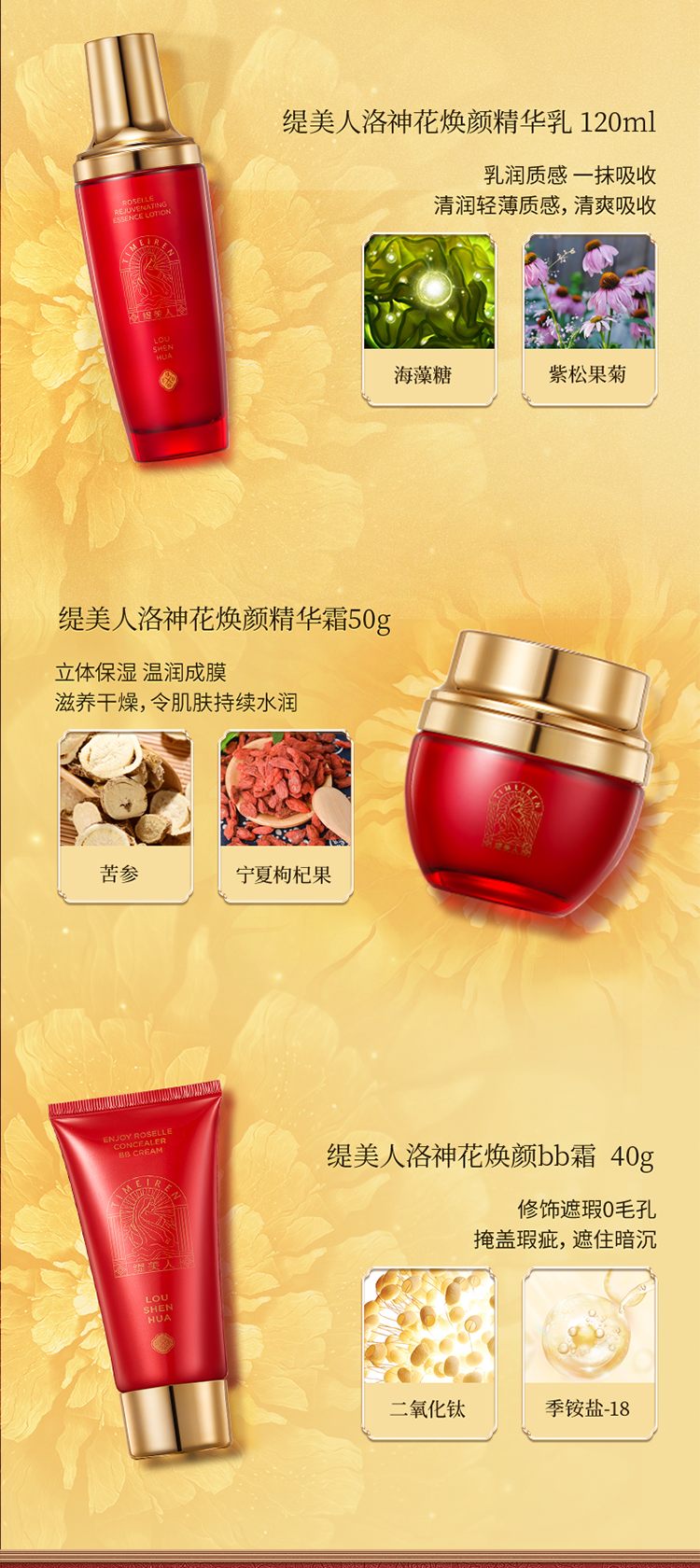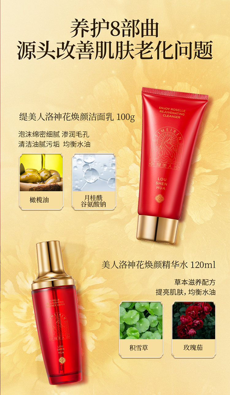 商品名称:缇美人臻享洛神花焕颜护肤套装205g+375ml