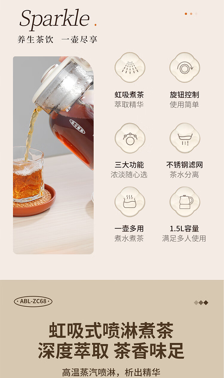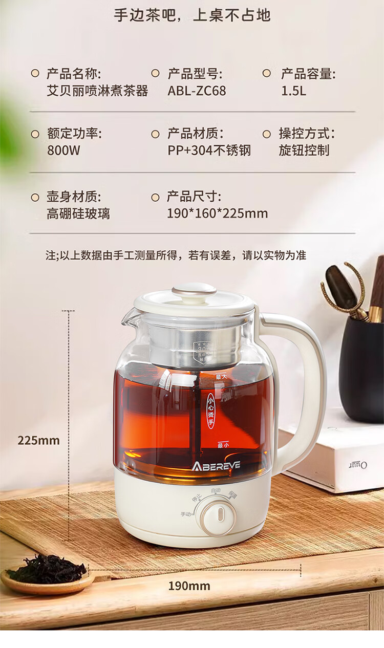 ABEREVE/艾贝丽1.5L喷淋煮茶器ABL-ZC68