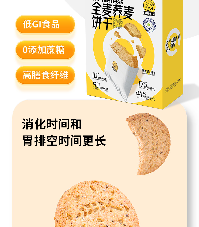 商品名称:神探伍伍低升糖指数全麦荞麦饼干512g