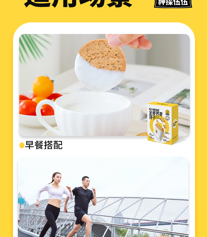 神探伍伍低升糖指数全麦荞麦饼干512g