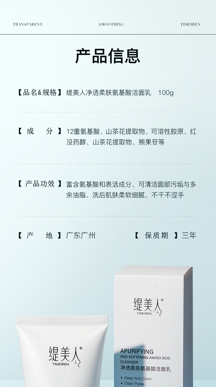 商品名称:缇美人净透柔肤氨基酸洁面乳100g
