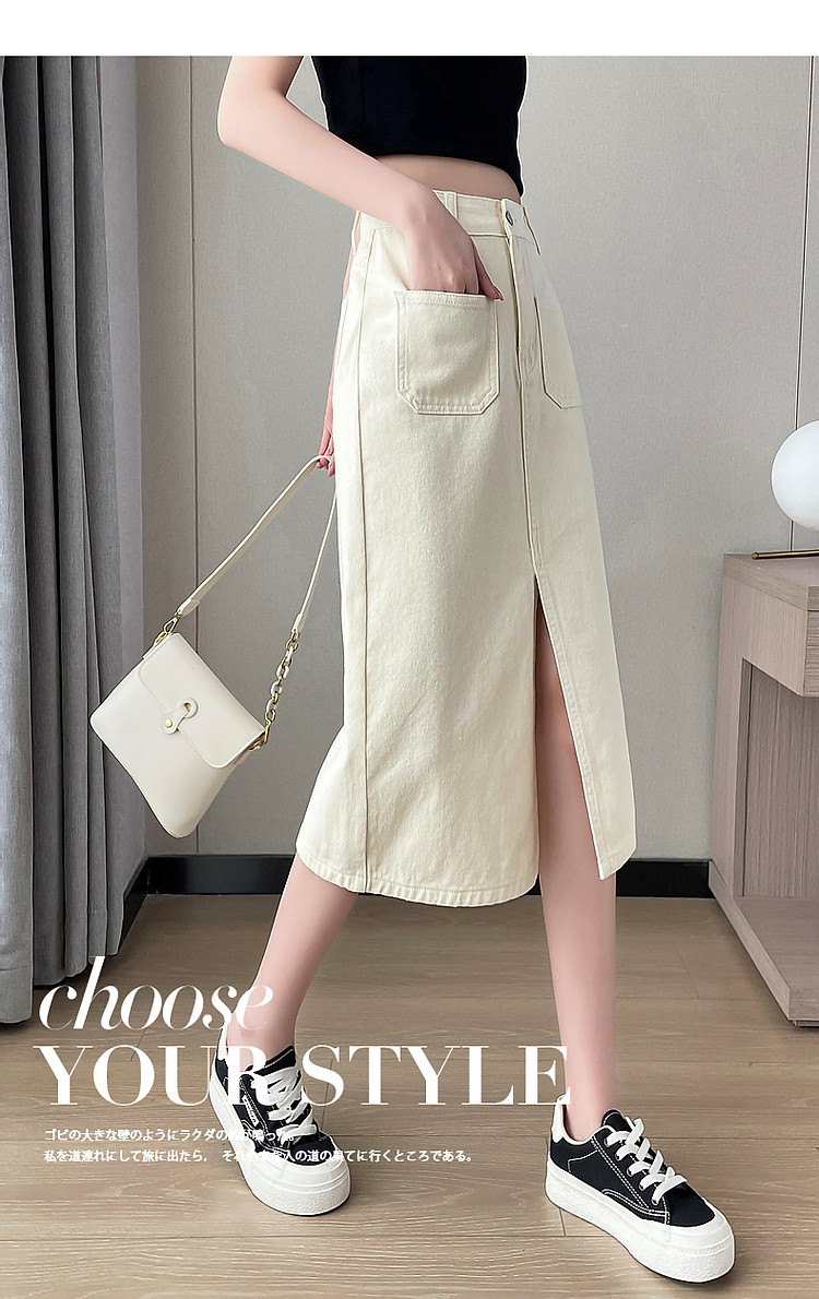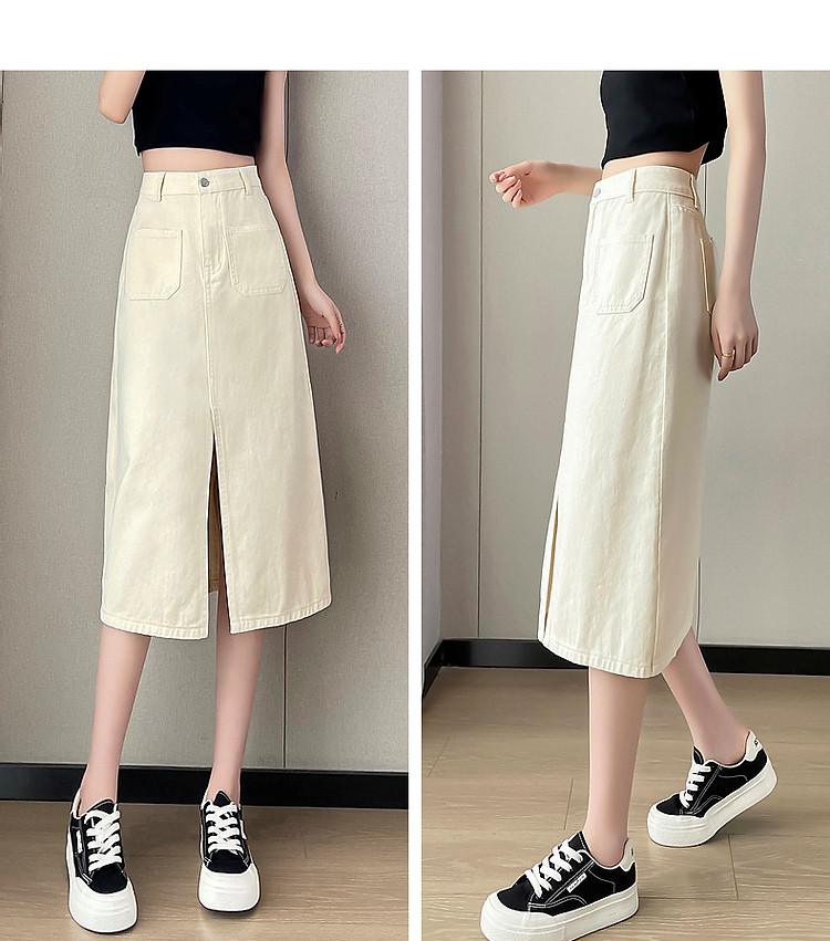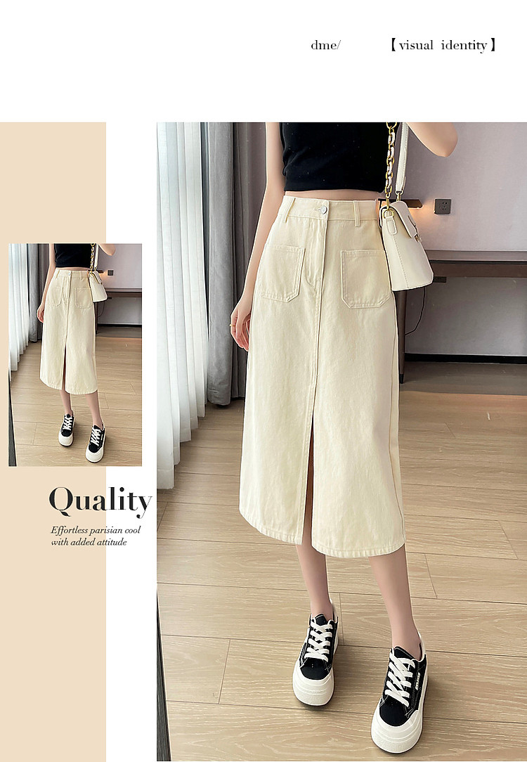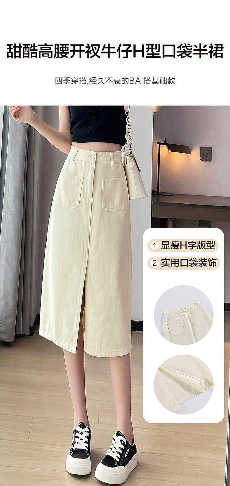 【辣妹穿搭神器】夏季甜酷高腰开衩直筒半身裙子女 350081