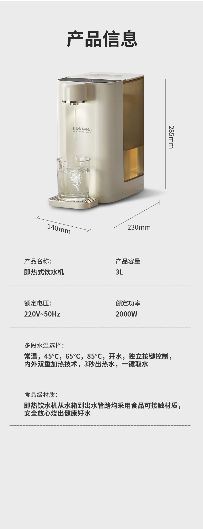 商品名称:HAIPAI/海牌3升即热饮水机HP-Q8