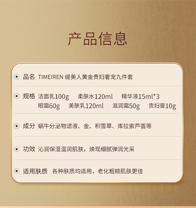 商品名称:缇美人黄金贵妇奢宠护肤九件套220g+285ml