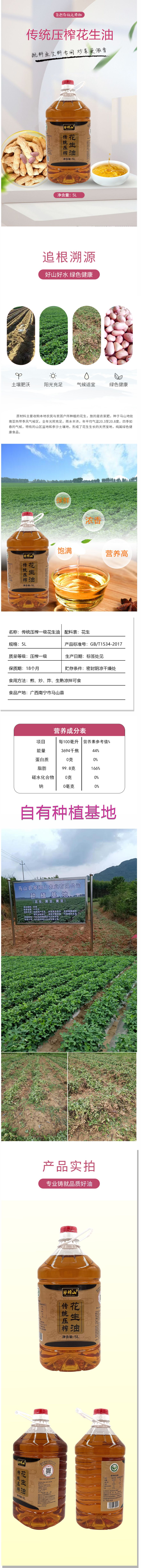 商品名称:琴榜山马山县传统压榨花生油5L