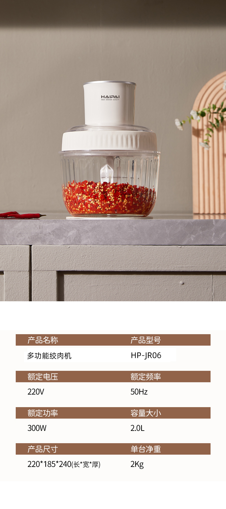商品名称:HAIPAI/海牌2升多功能绞肉机HP-JRO6