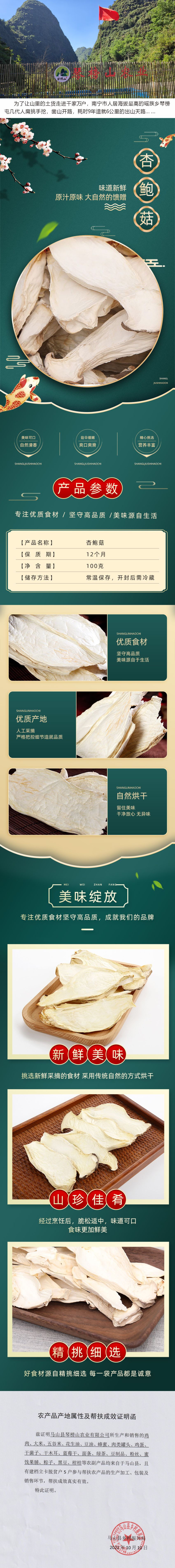 商品名称:琴榜山马山县杏鲍菇100g