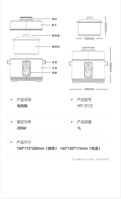 商品名称:HAIPAI/海牌1升多功能电炖蛊HP-D112
