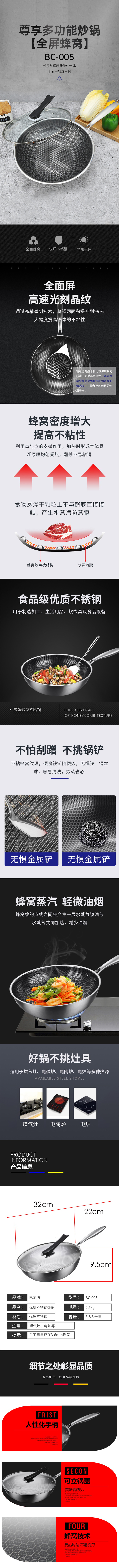 商品名称:TI-BRO/巴尔德32cm尊享全屏蜂窝炒锅带盖BC-005