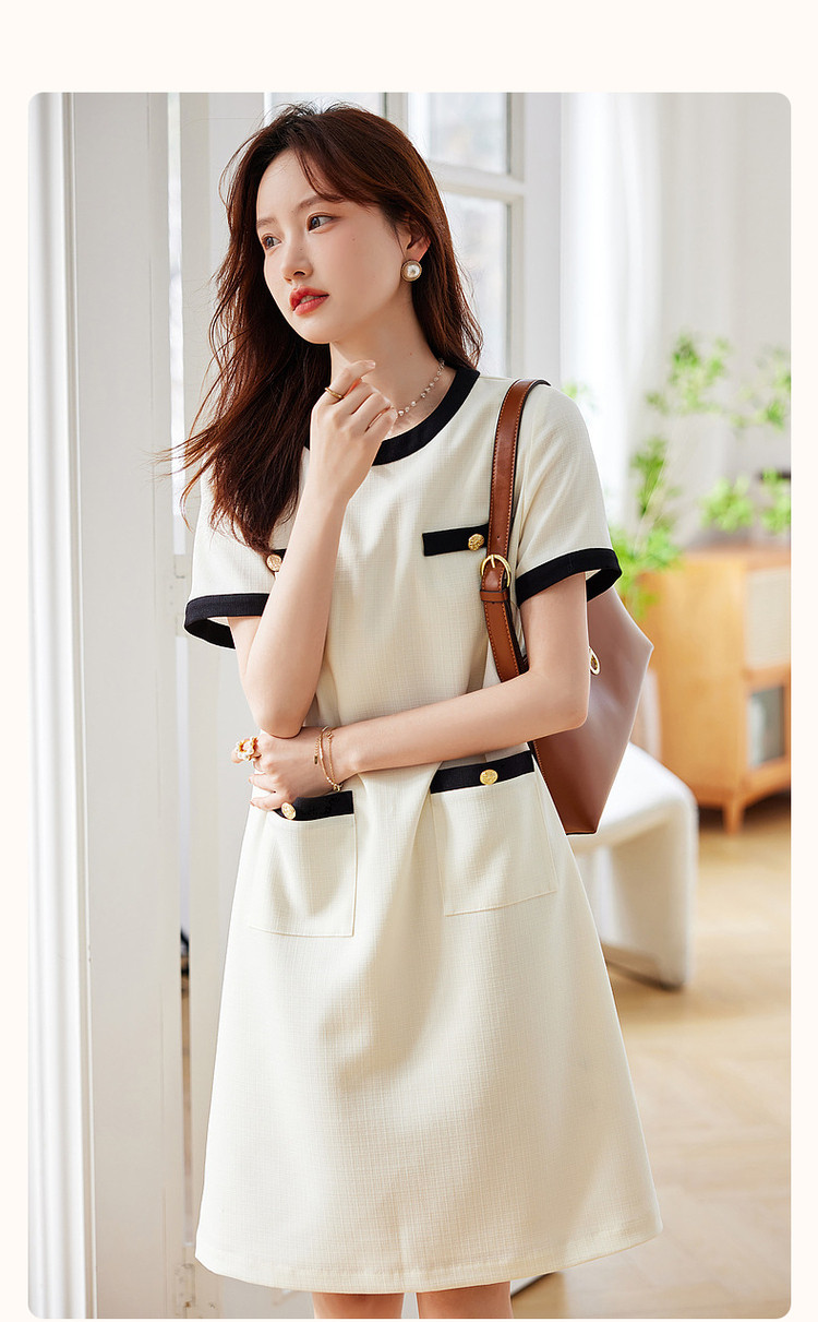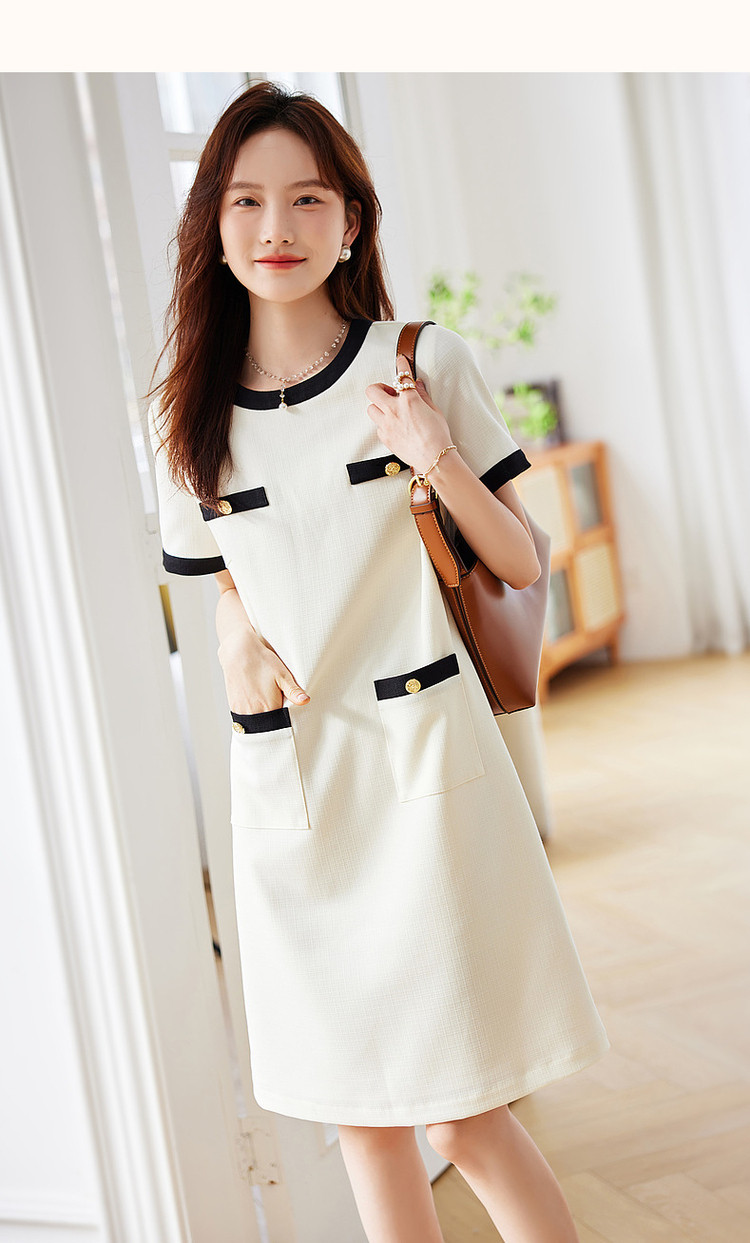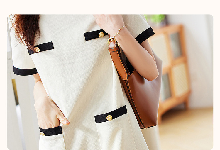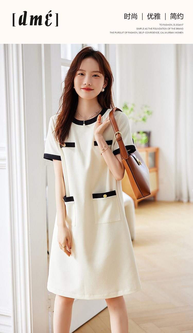 商品名称:【优雅女性主义】夏率性摩登小香风撞色宽松藏肉连衣裙女中长款 913729