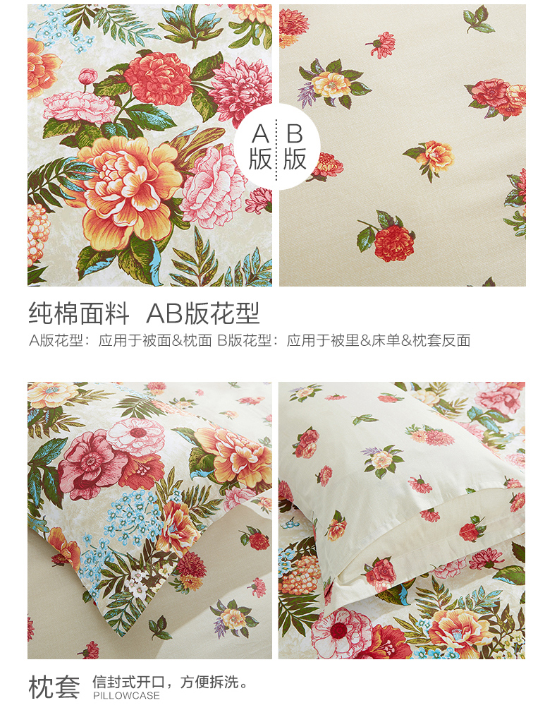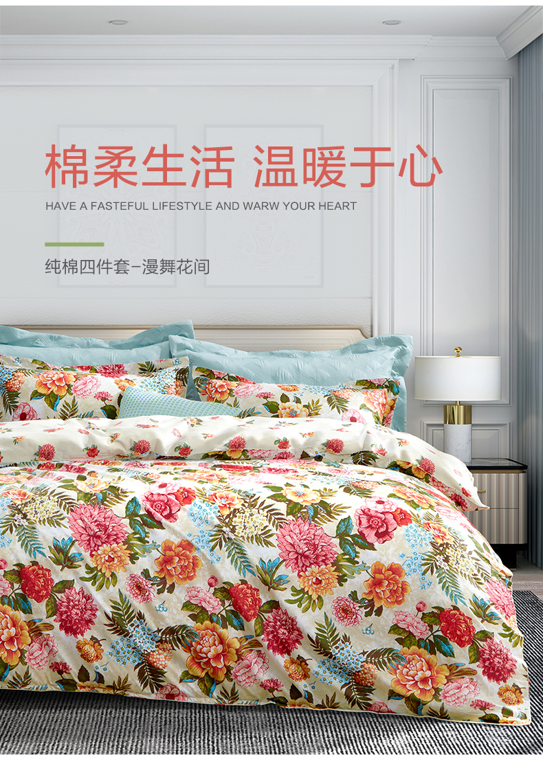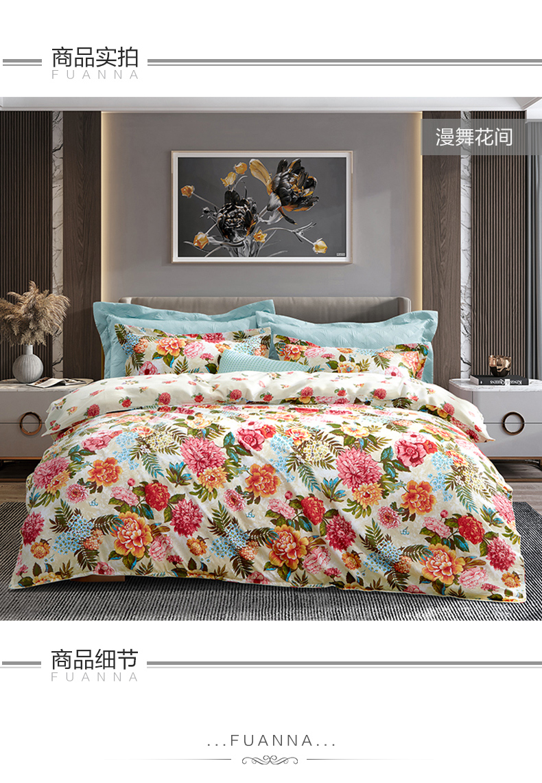 FUANNA/富安娜漫舞花间纯棉床品四件套203*229cm