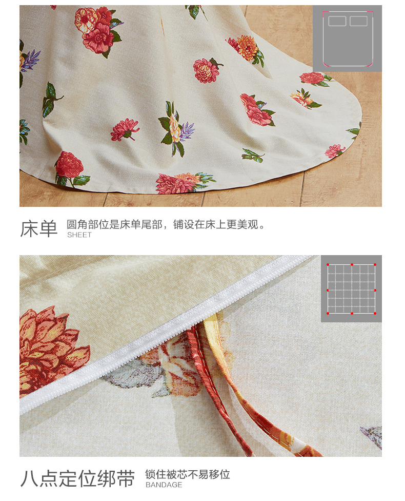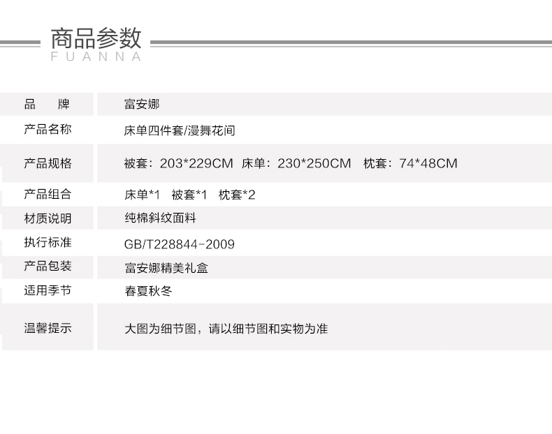 商品名称:FUANNA/富安娜漫舞花间纯棉床品四件套203*229cm