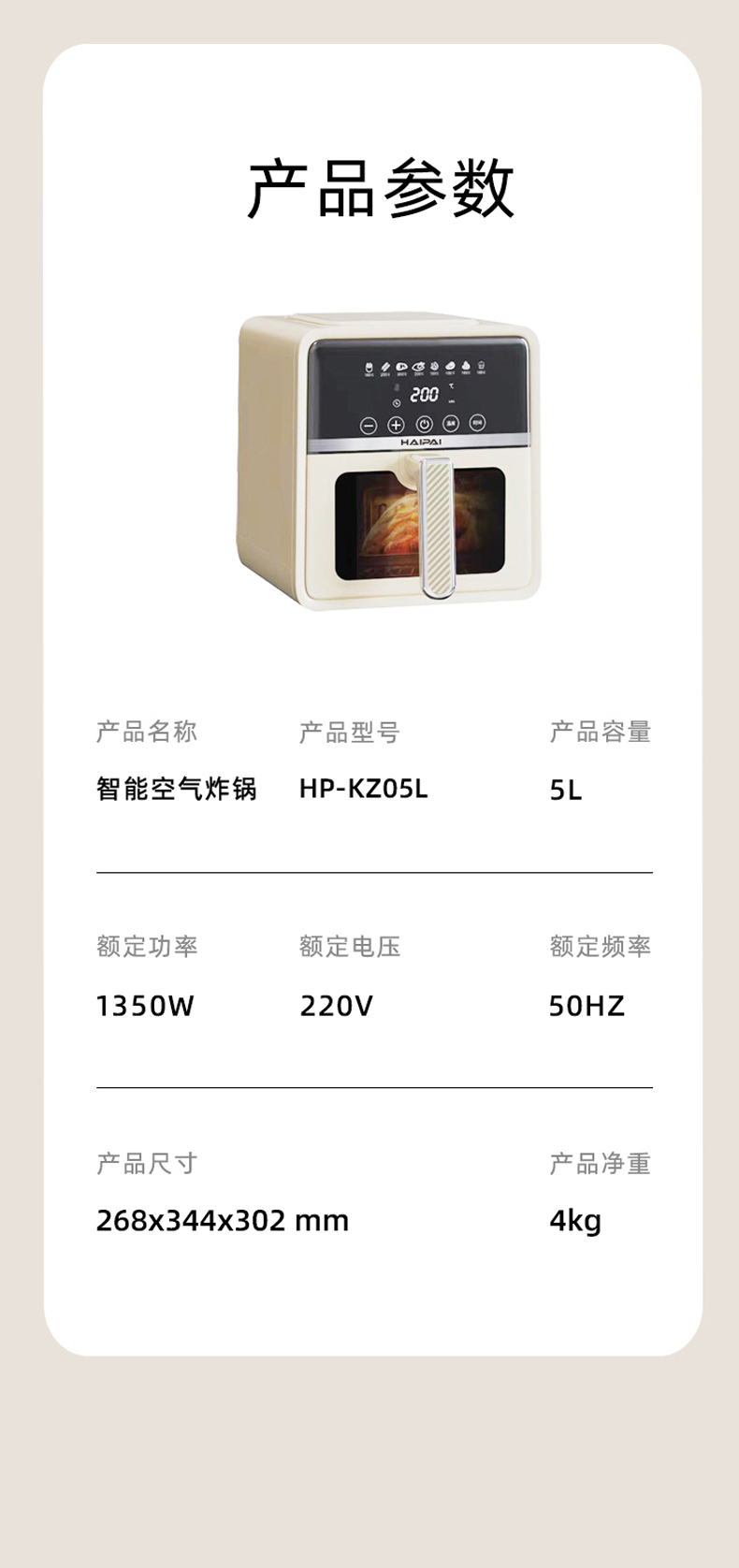 商品名称:HAIPAI/海牌5升智能空气炸锅HP-KZ05L