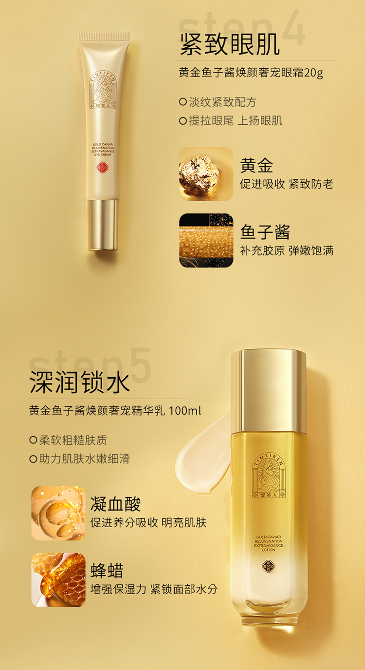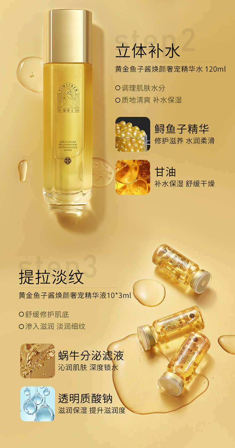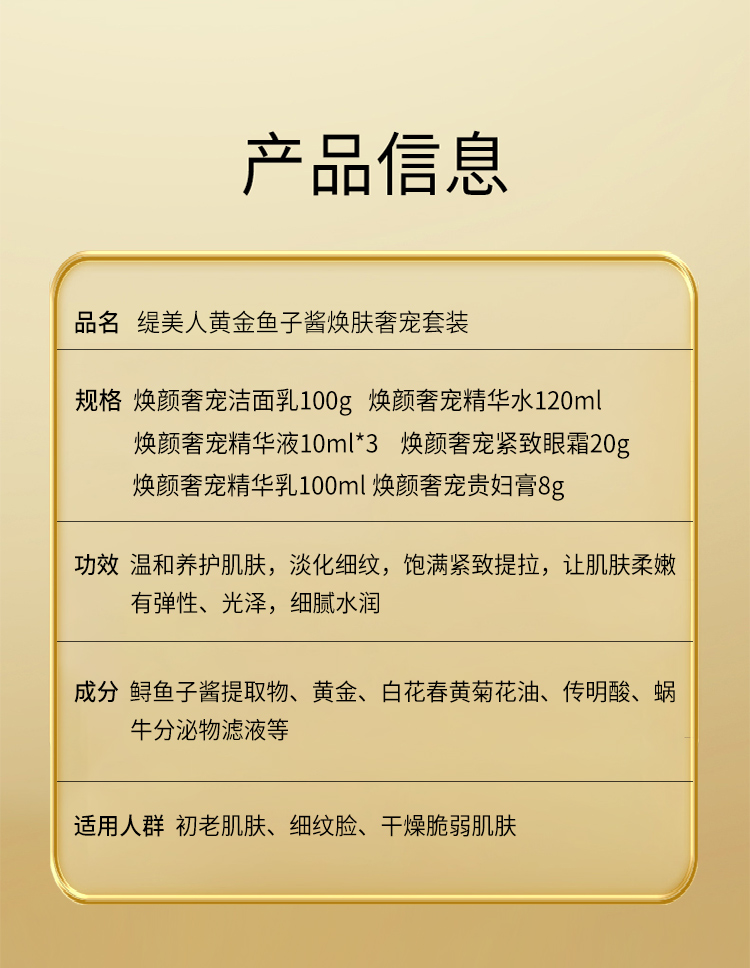 商品名称:缇美人黄金鱼子酱焕肤奢宠护肤套装128g+250ml