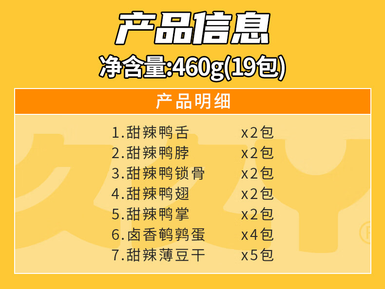 商品名称:【京东/德邦配送】久久丫卤味零食大礼包460g