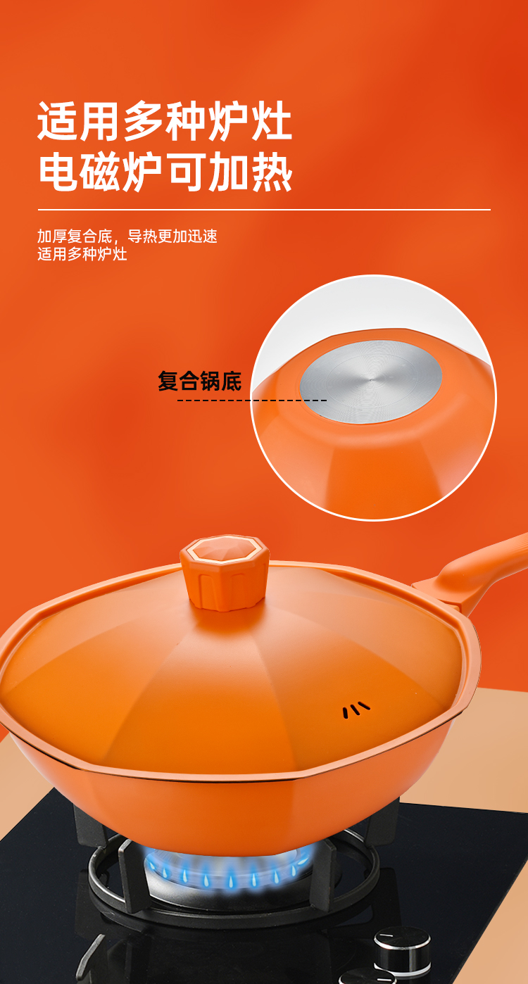 TI-BRO/巴尔德32cm橙优选炒锅带盖BC-031