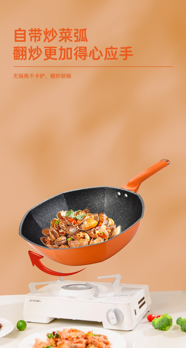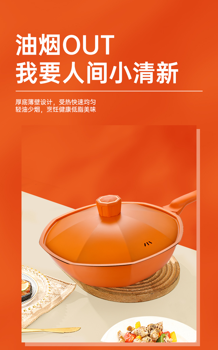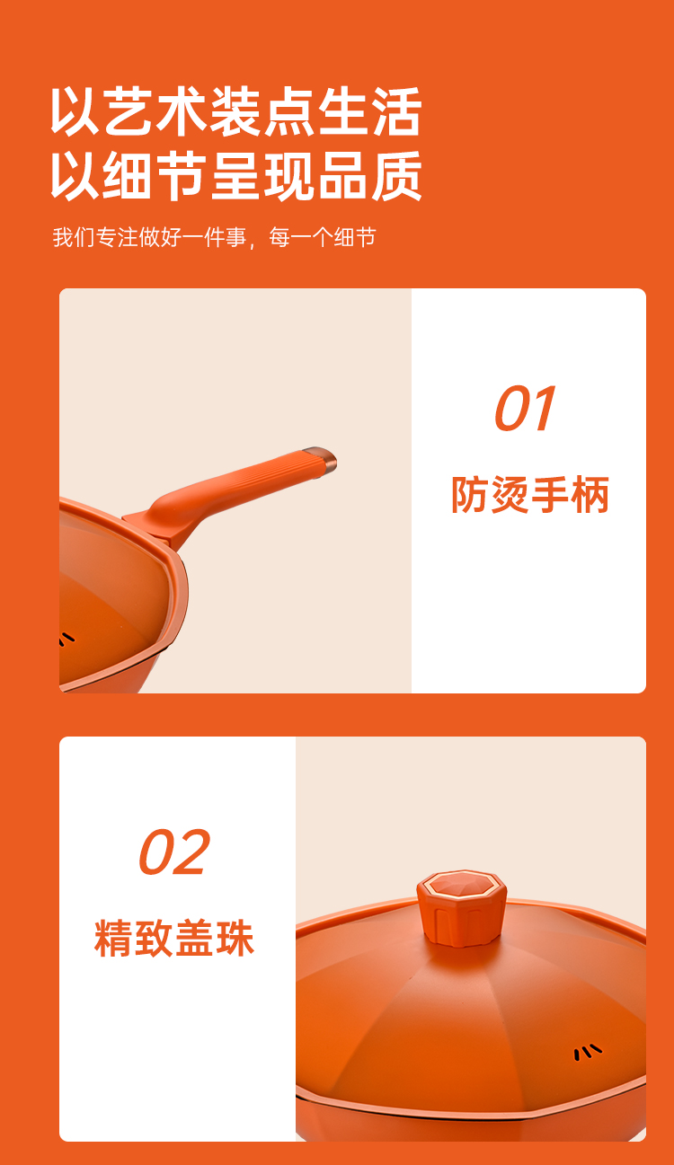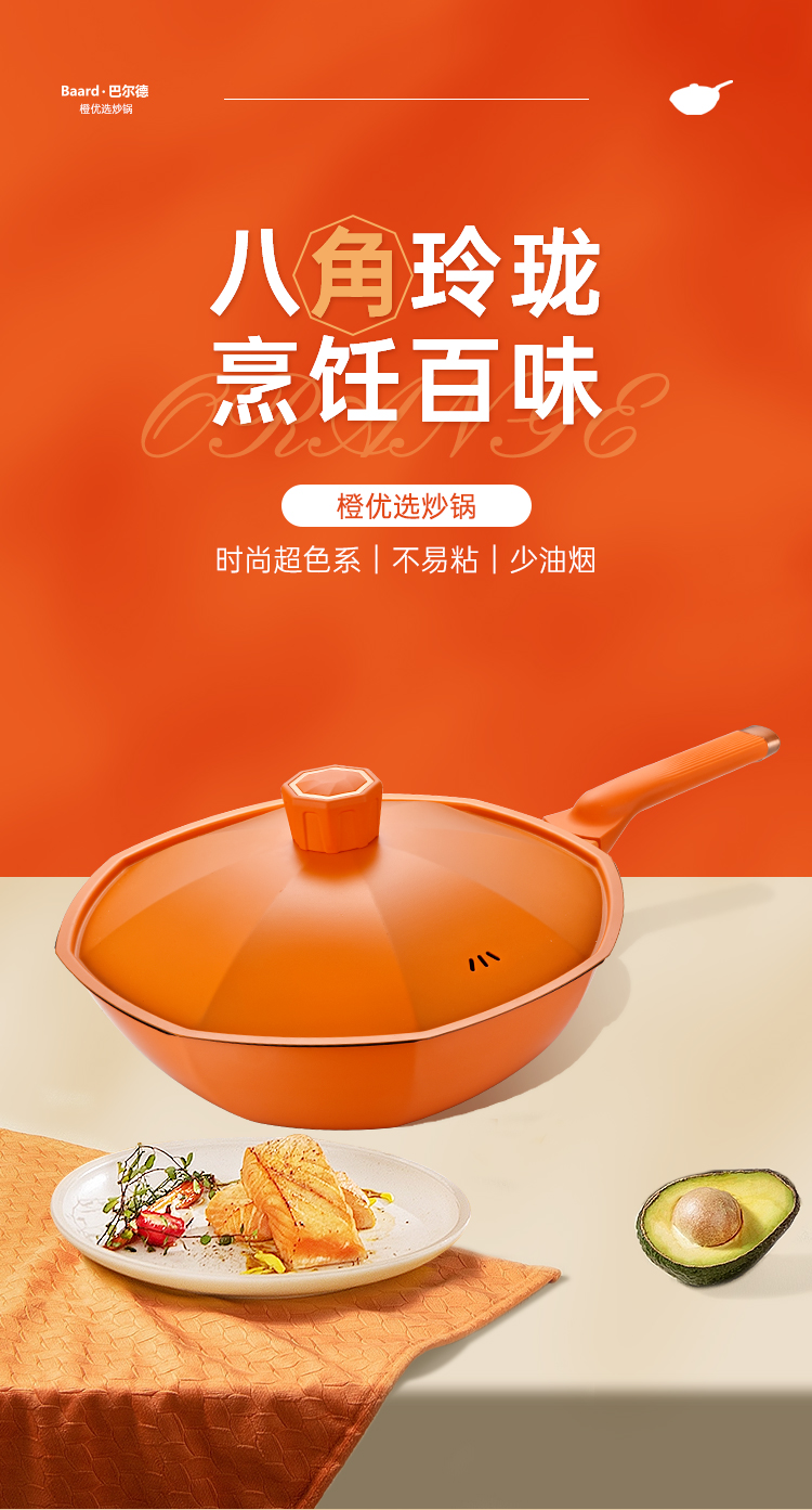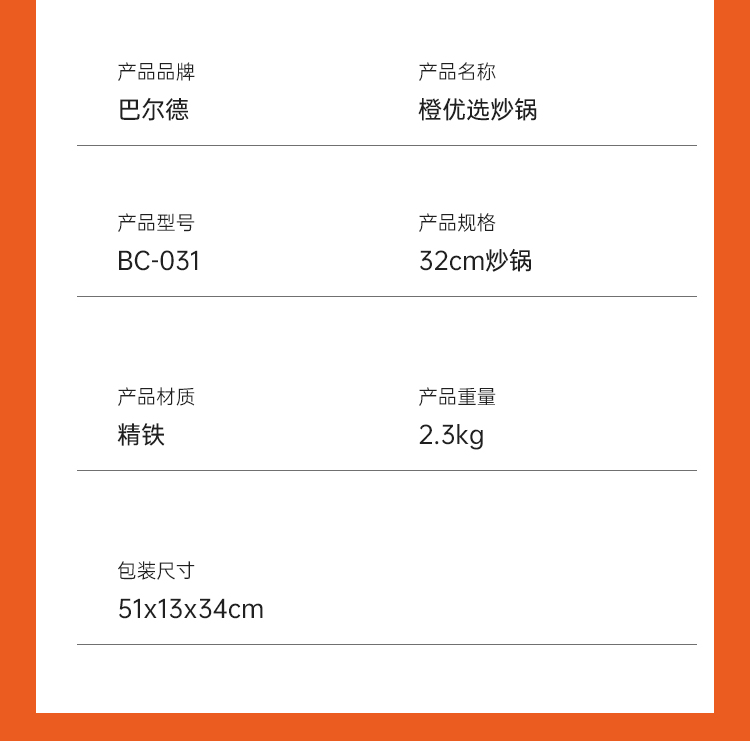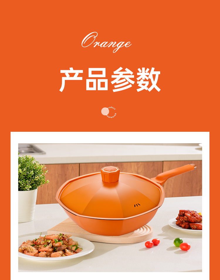 商品名称:TI-BRO/巴尔德32cm橙优选炒锅带盖BC-031