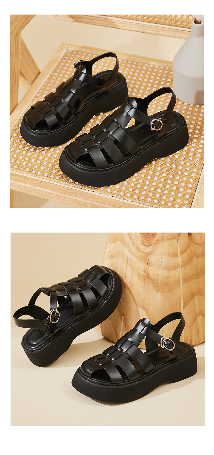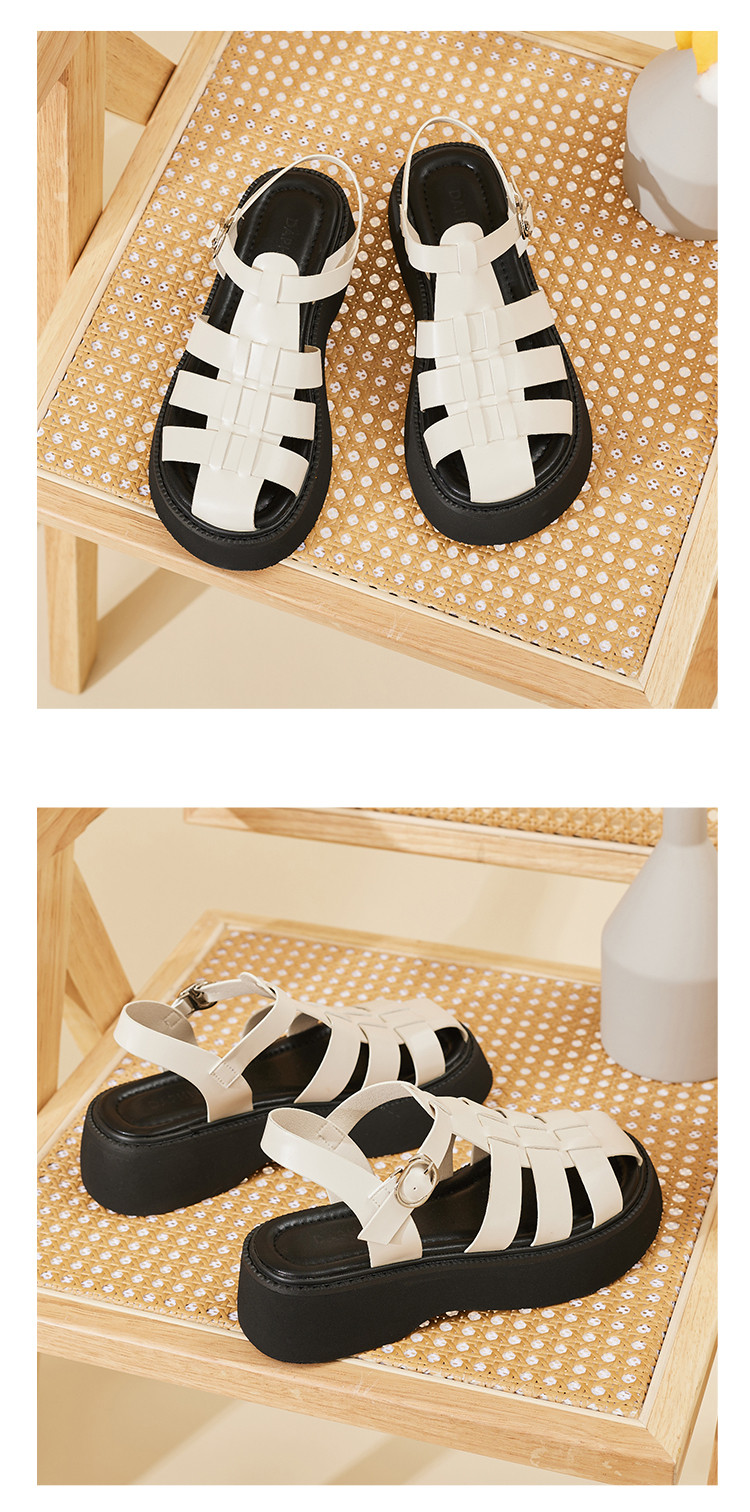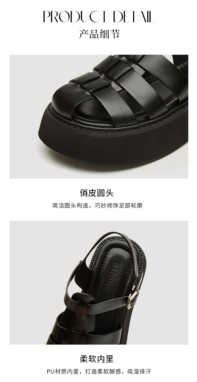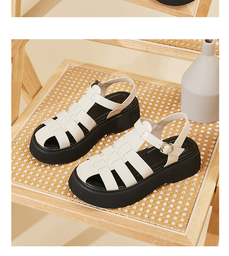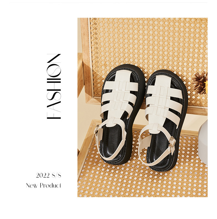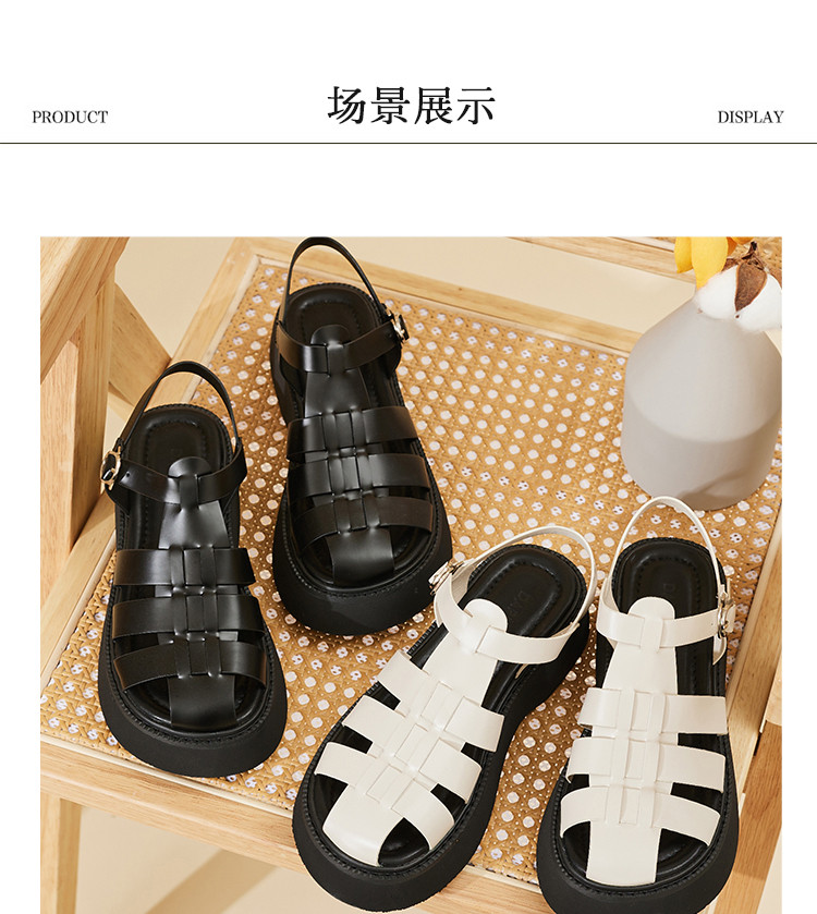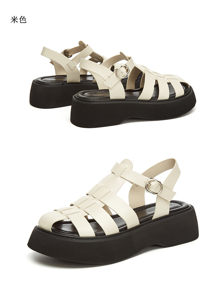 商品名称:夏季女气质编织凉鞋猪笼鞋复古一字搭扣罗马凉鞋百搭日常舒适女鞋 243415