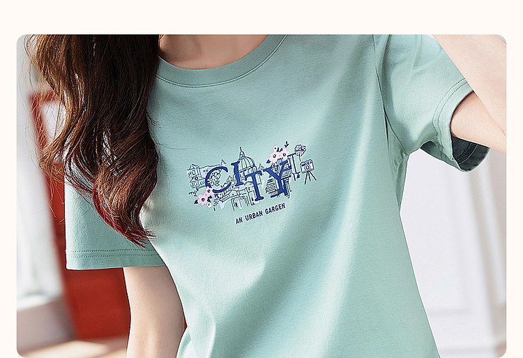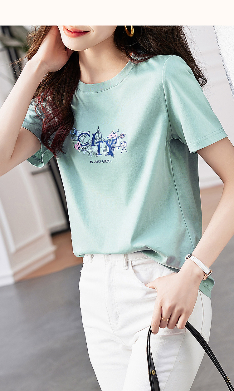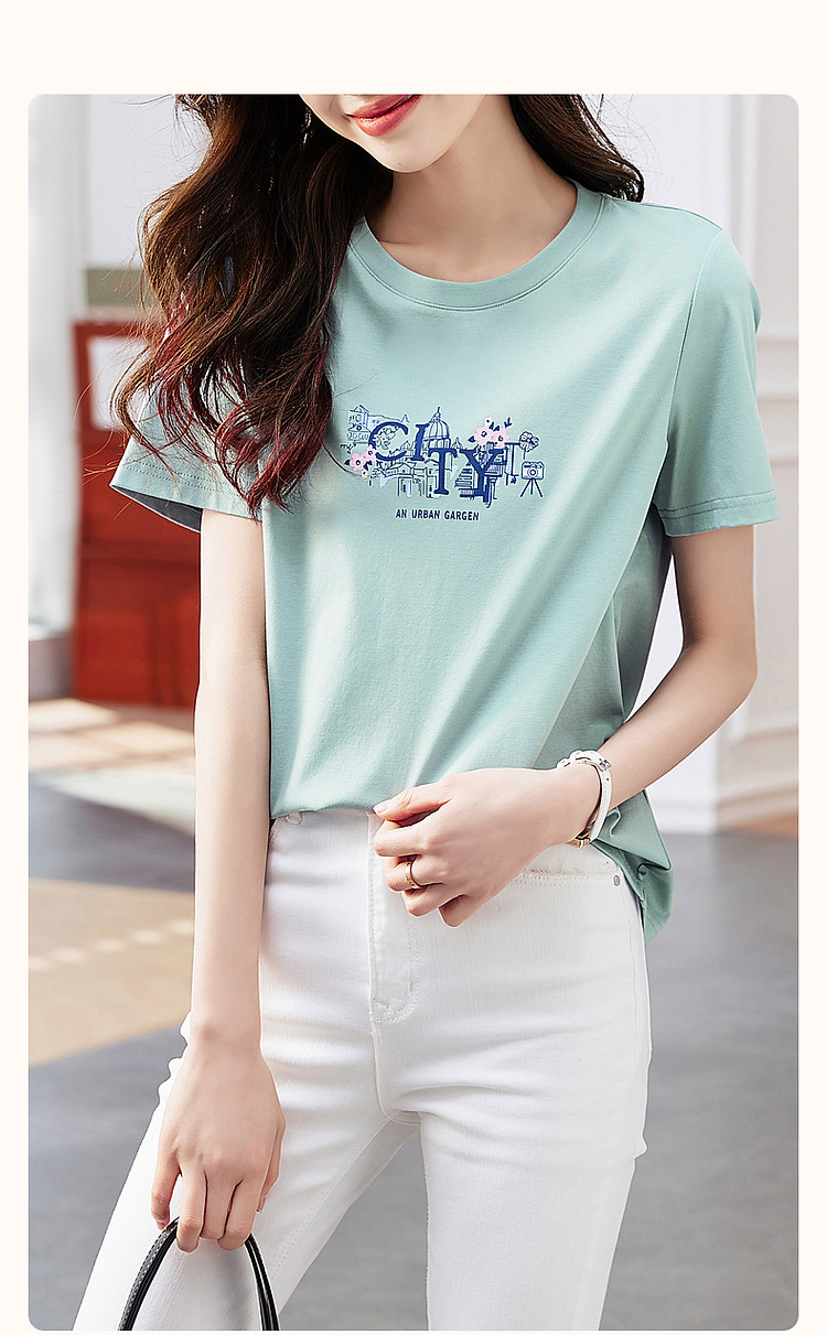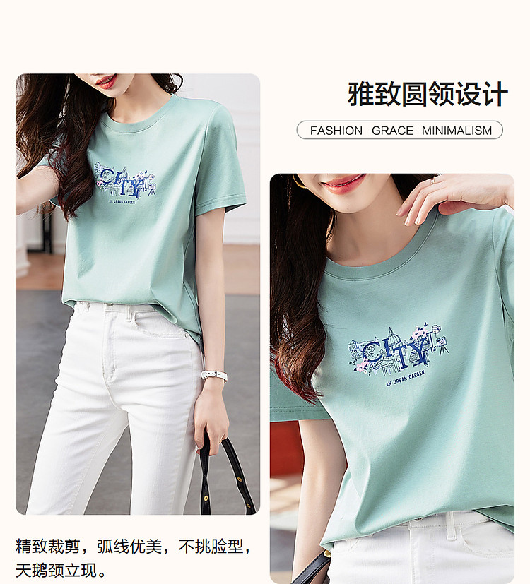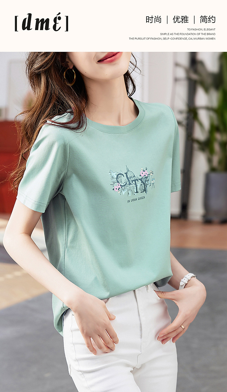 商品名称:【高质棉氨针织印花女式t恤】夏季款圆领短袖t恤女 879105