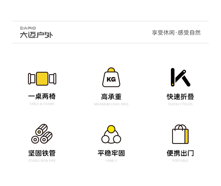 DAMO/大迈露营桌椅套装-热带棕DM-2015*1+DM-2013*2
