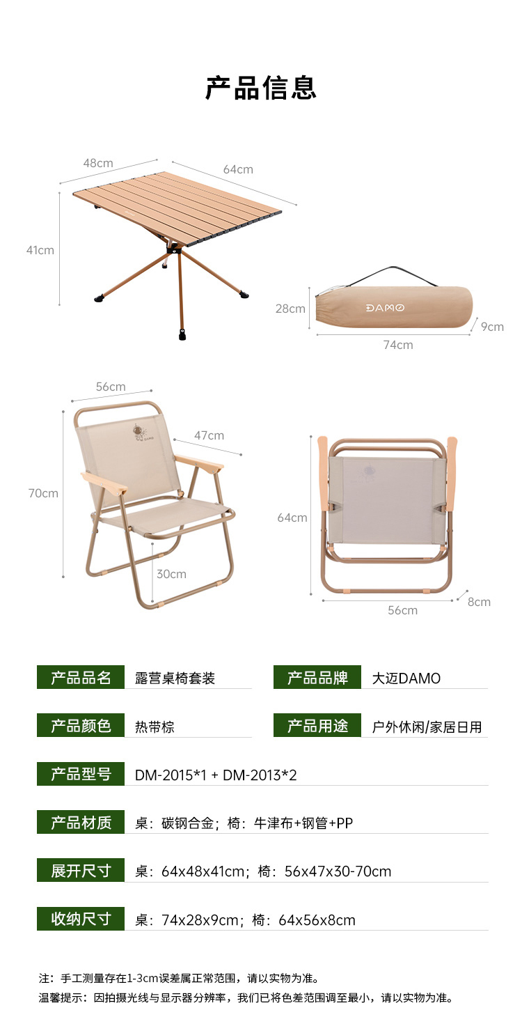 商品名称:DAMO/大迈露营桌椅套装-热带棕DM-2015*1+DM-2013*2