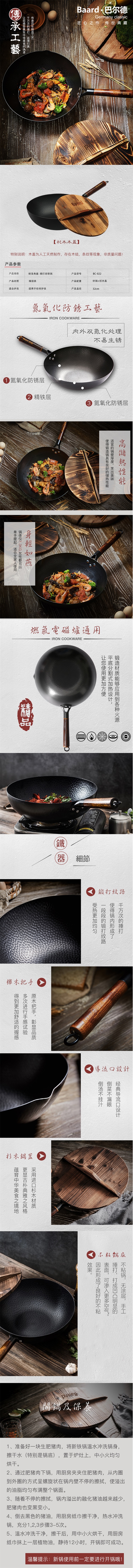 商品名称:TI-BRO/巴尔德32cm臻享典藏捶打老铁锅-原木盖BC-022