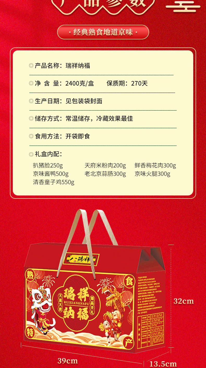 商品名称:【京东配送】八瑞祥瑞祥纳福熟食礼盒2400g