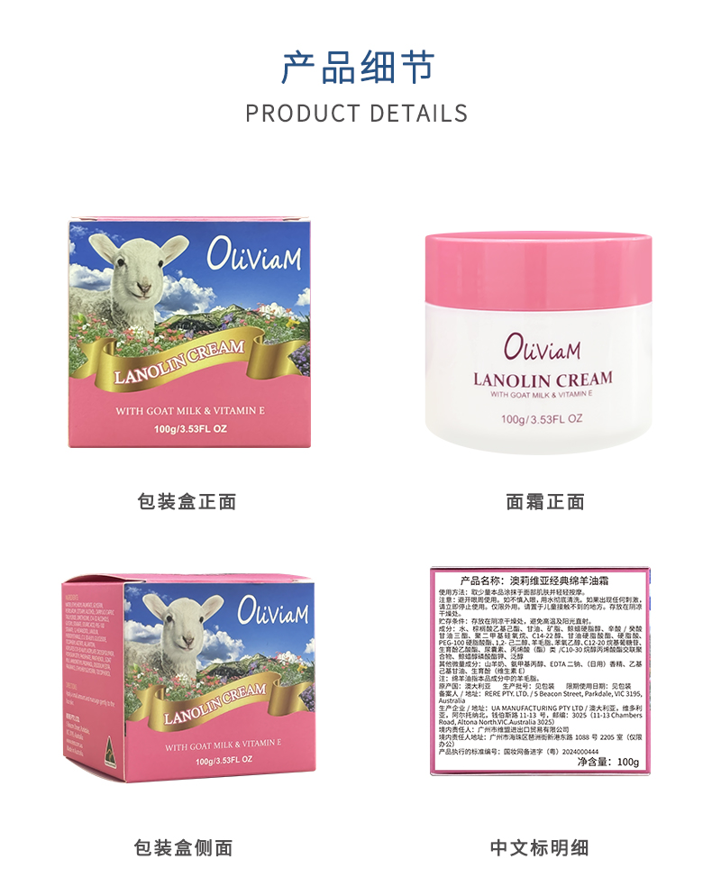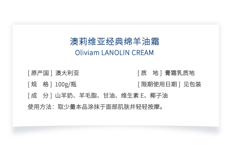商品名称:Oliviam/澳莉维亚经典绵羊油霜100g(本土版)