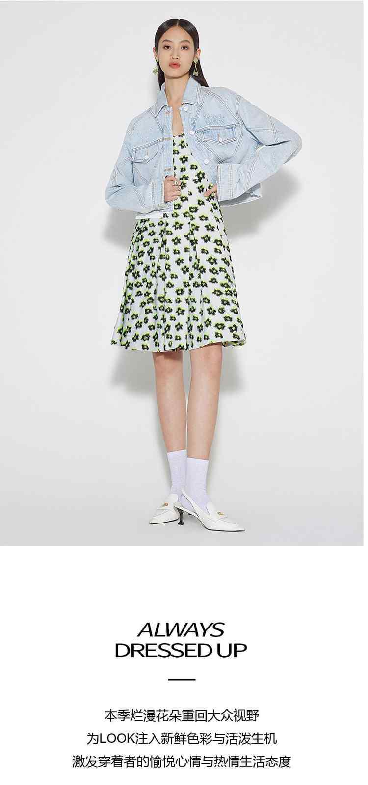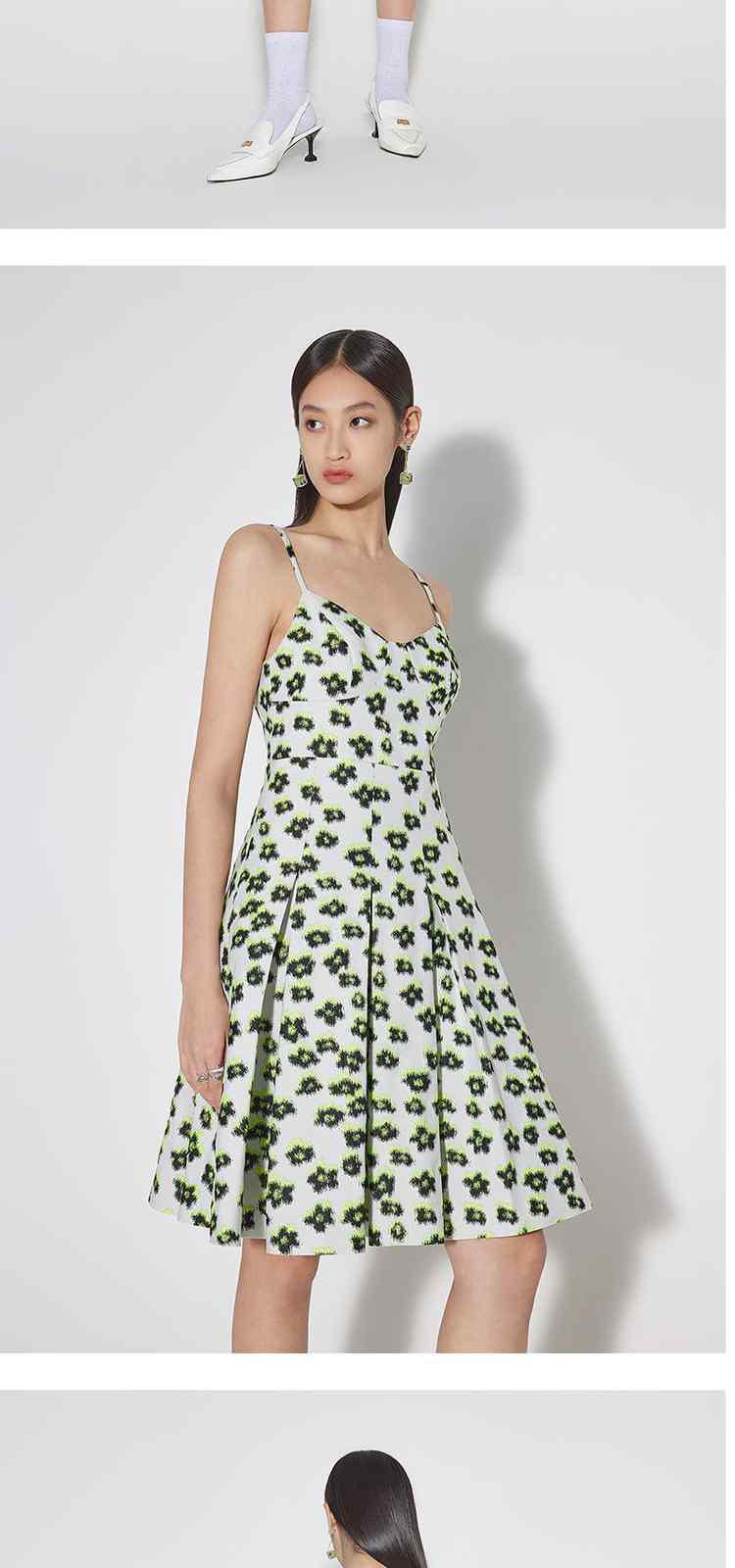 商品名称:黑标系列 夏装碎花提花a字收腰吊带连衣裙 718543