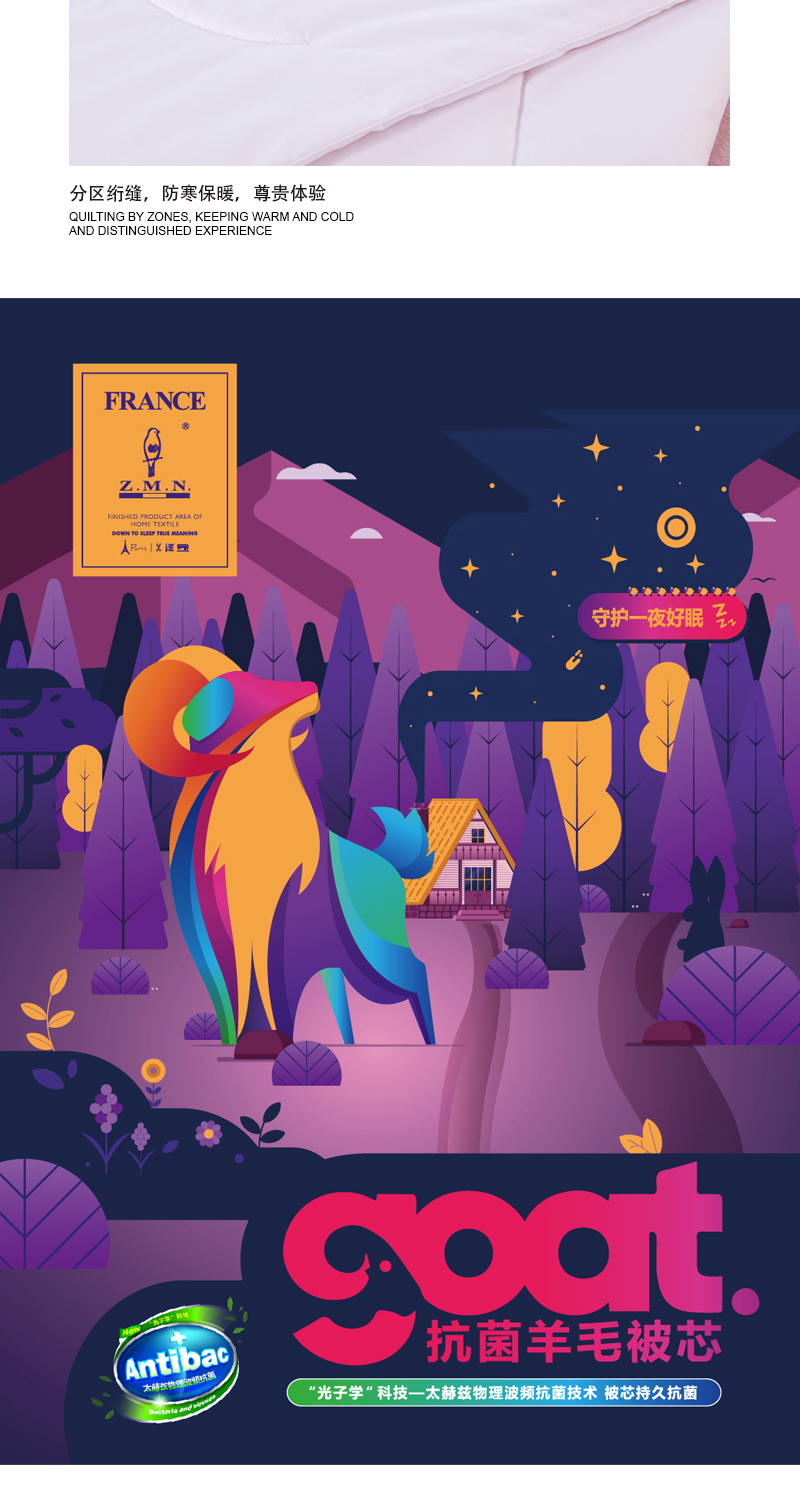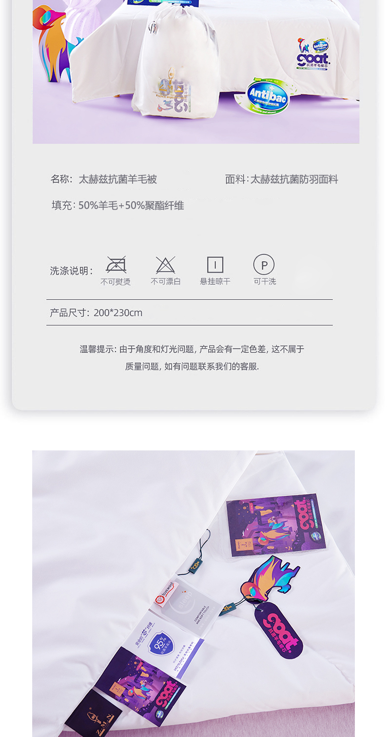 商品名称:Z.M.N./法国啄木鸟贝达太赫兹抗菌羊毛被200*230cm 2000g