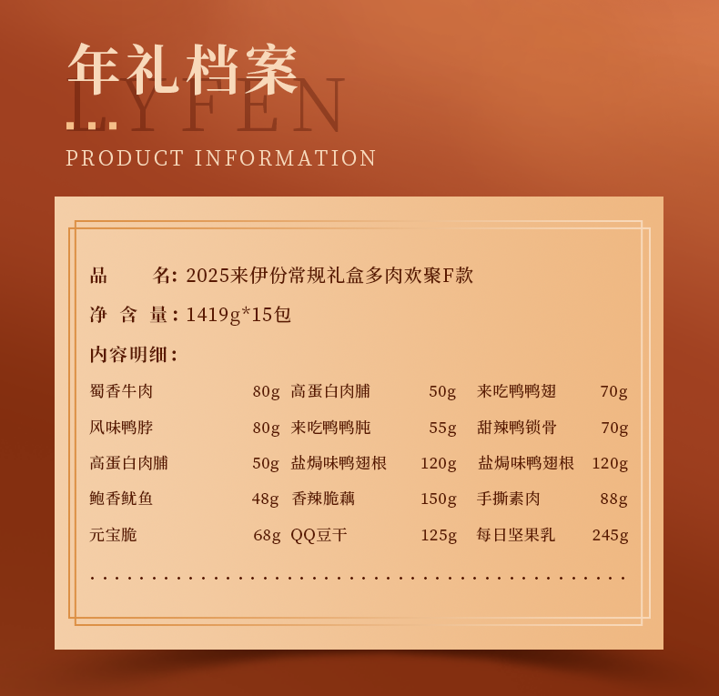 商品名称:LYFEN/来伊份多肉欢聚零食礼盒F款1419g