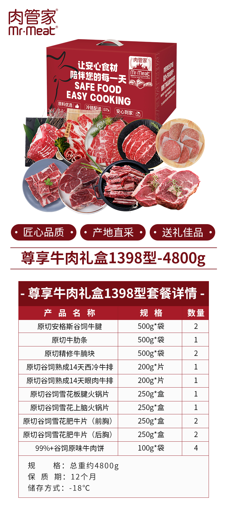 商品名称:【顺丰配送】肉管家1398型尊享牛肉礼盒约4800g