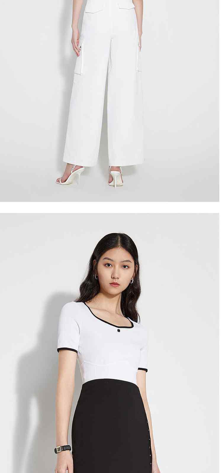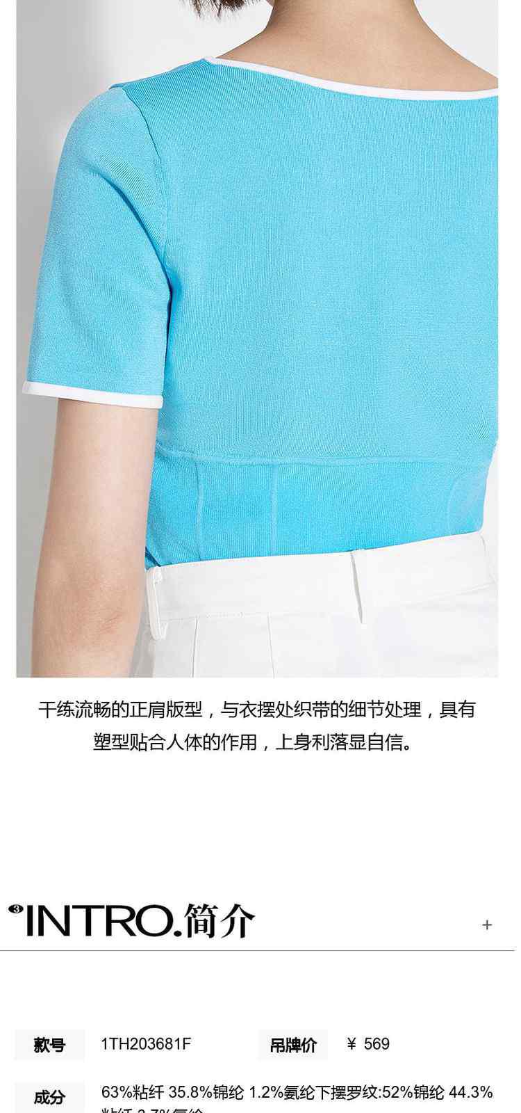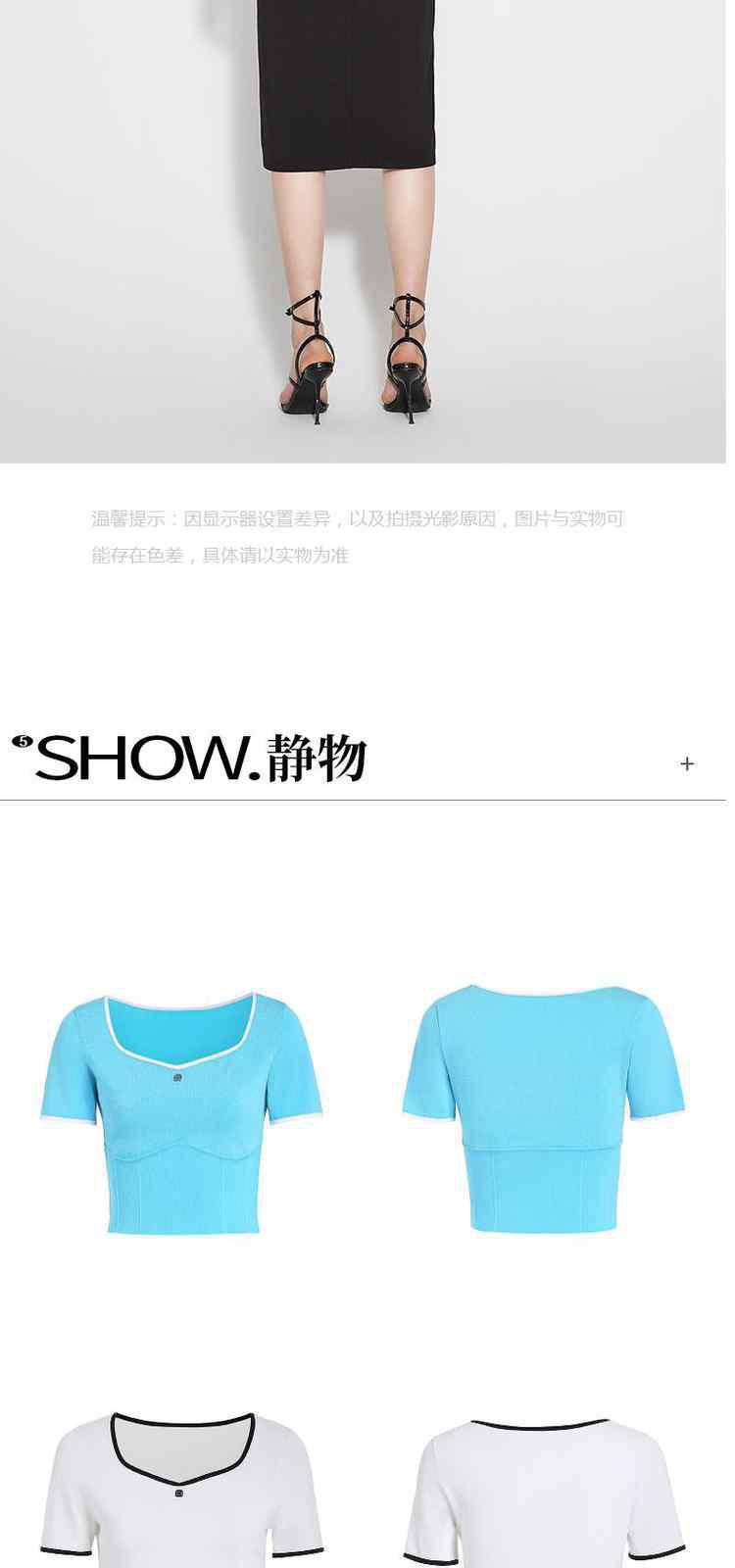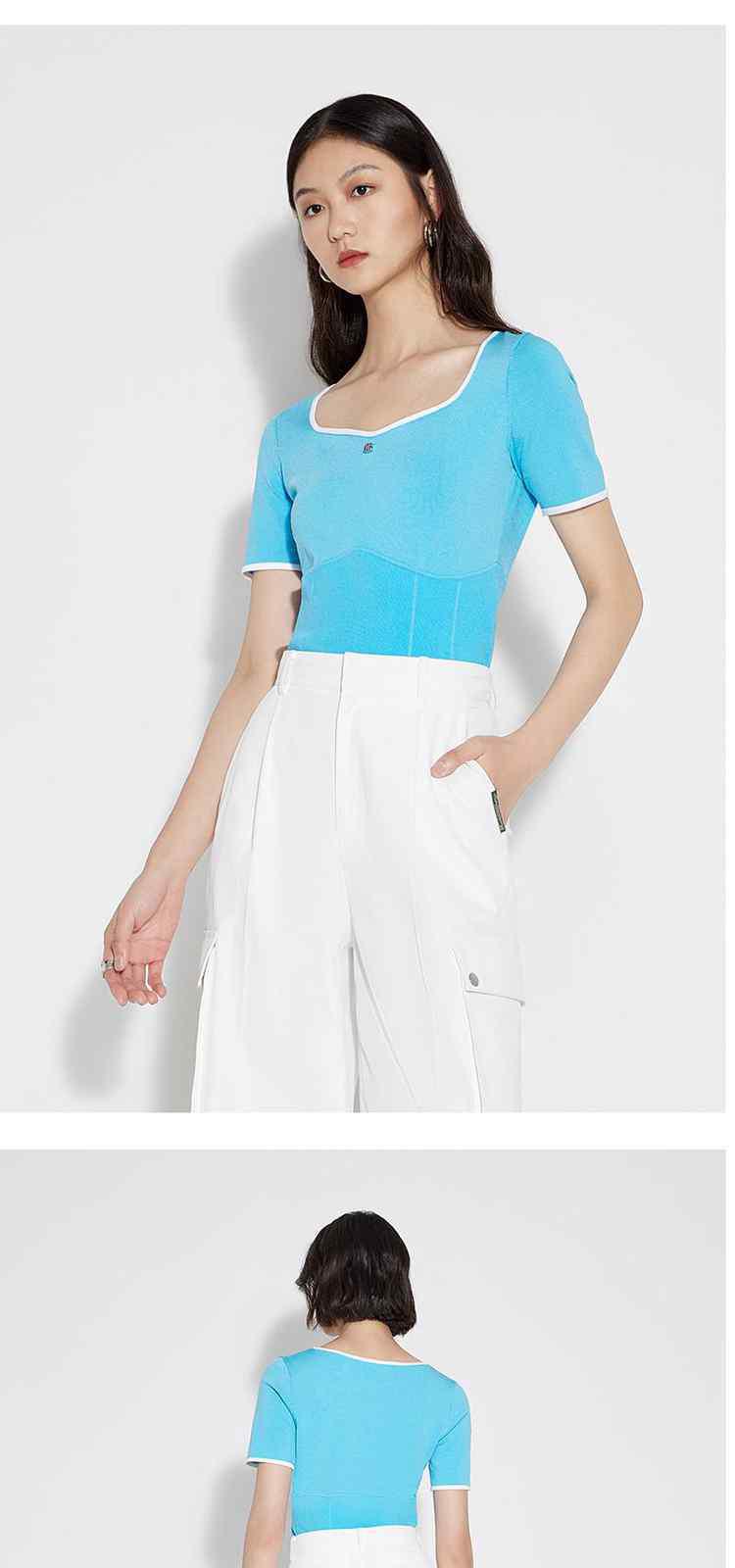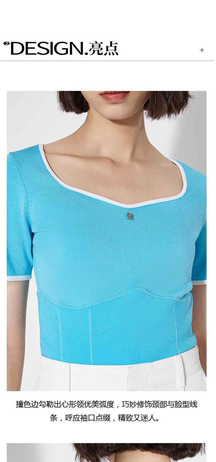 商品名称:黑标系列夏装 撞边短款小个子心形领短袖针织衫女 710095