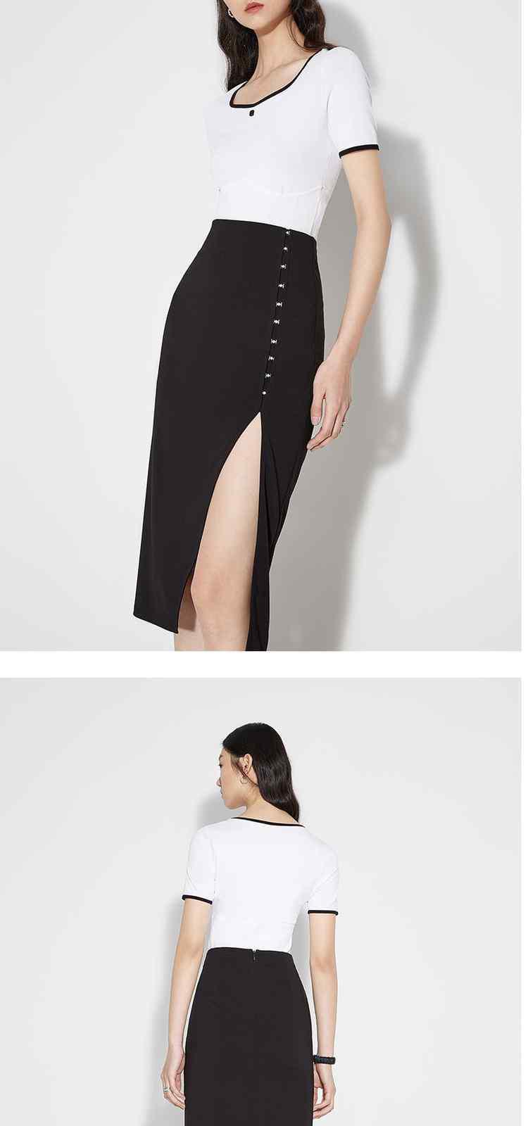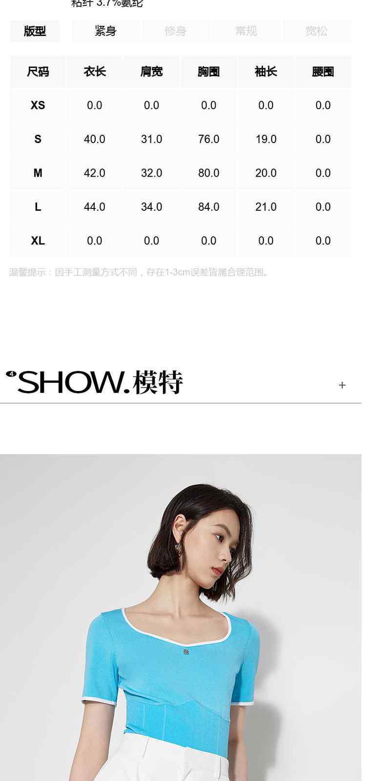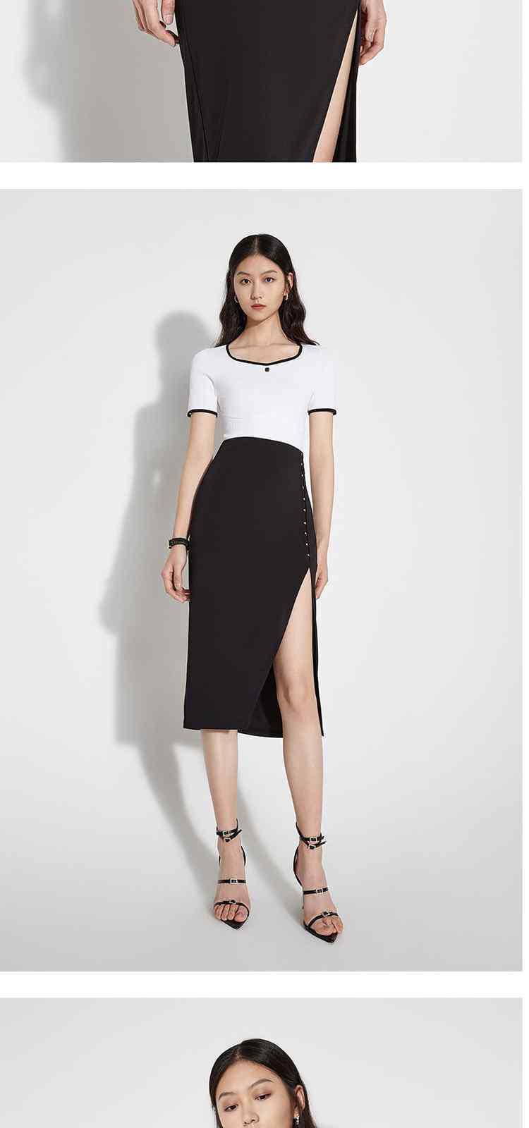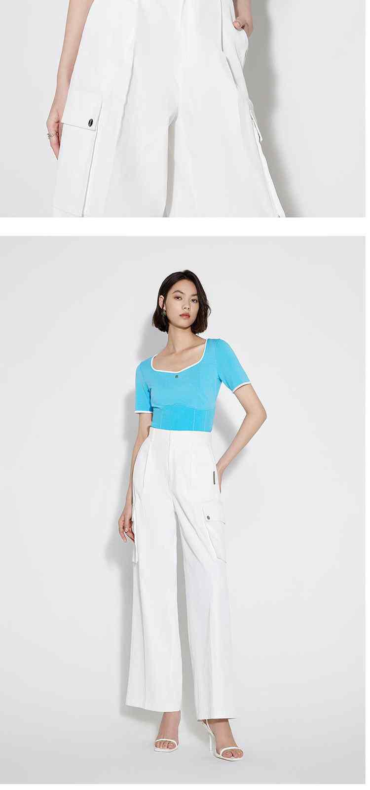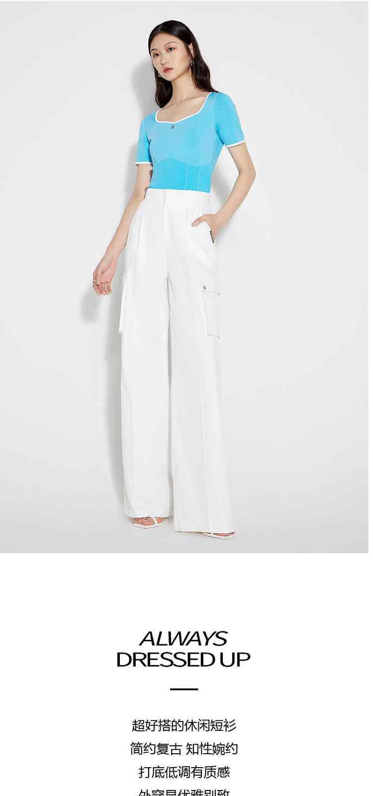 商品名称:黑标系列夏装 撞边短款小个子心形领短袖针织衫女 710095