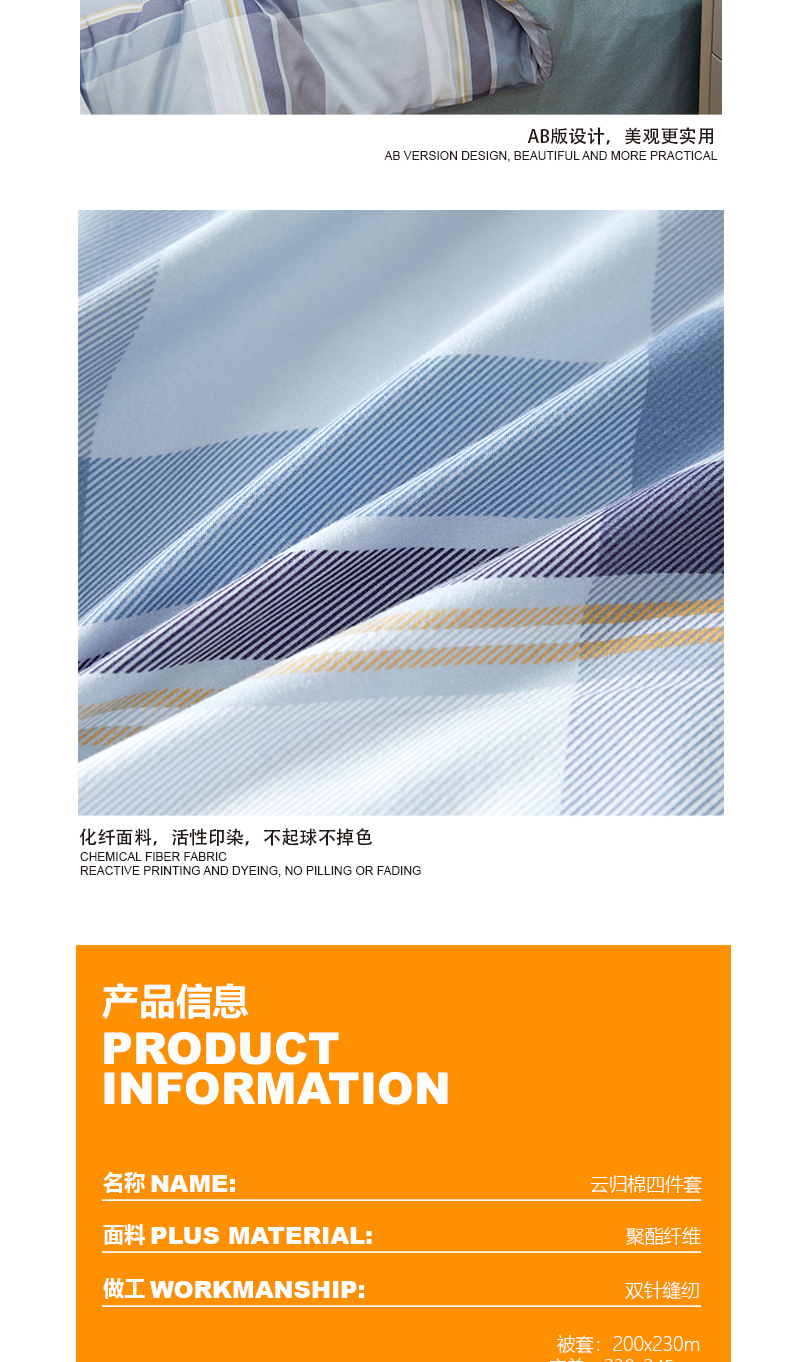商品名称:Z.M.N./法国啄木鸟雷瓦云归棉涤磨毛床品四件套200*230cm