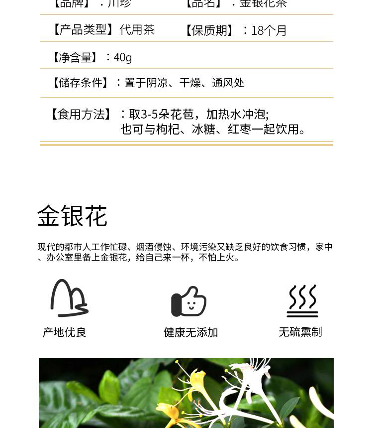 商品名称:川珍金银花茶40g*2罐