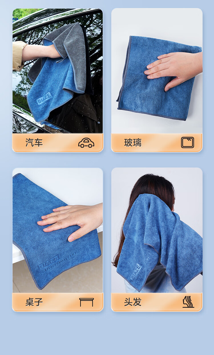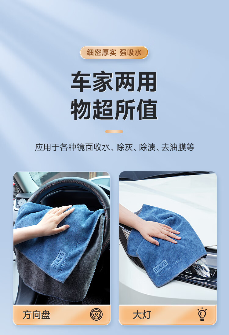 商品名称:BIAZE/毕亚兹双面短绒洗车毛巾2条装QJ-196