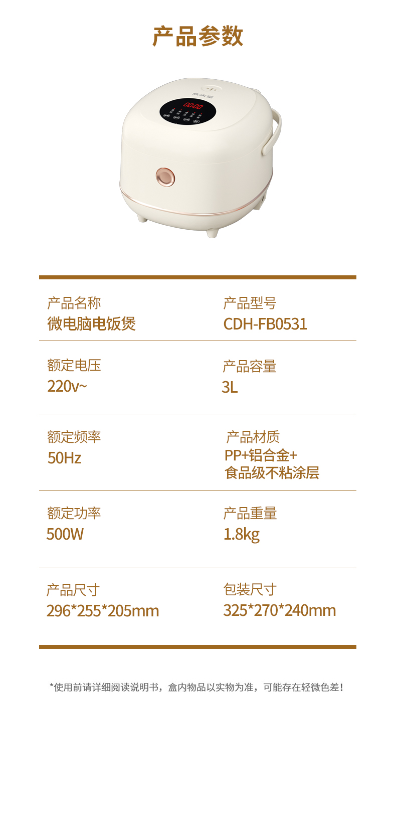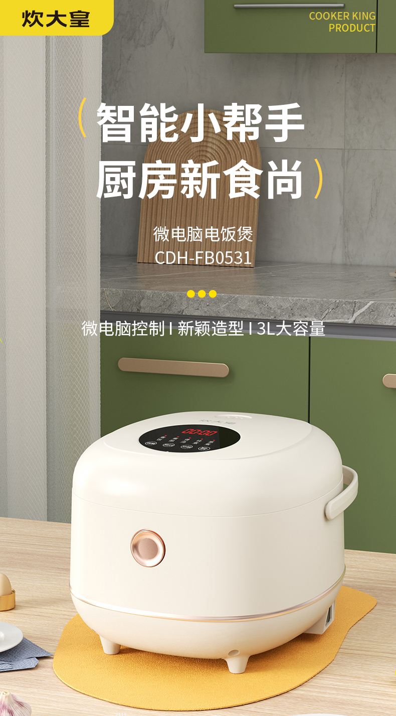 商品名称:COOKERKING/炊大皇3升微电脑电饭煲CDH-FB0531