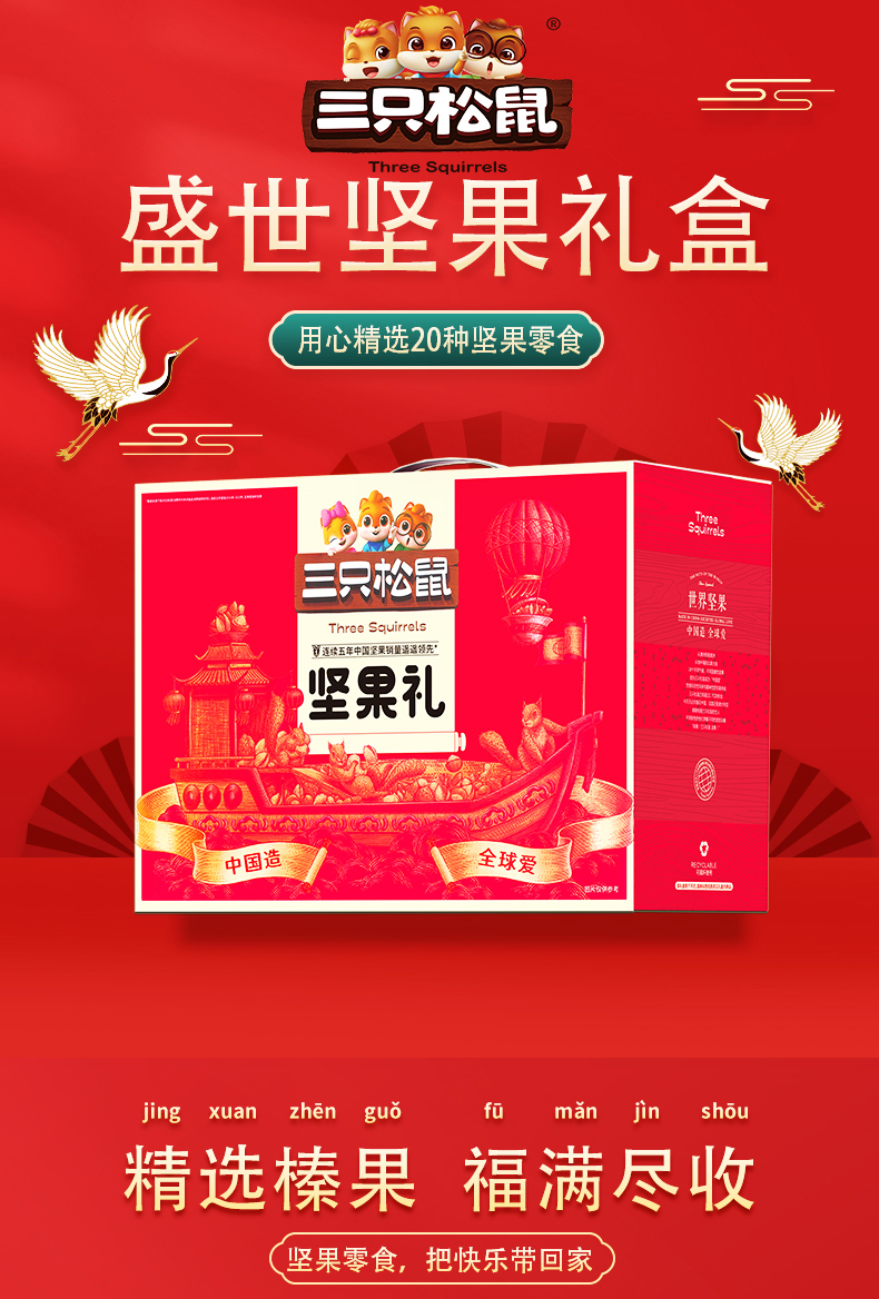 商品名称:【顺丰配送】三只松鼠盛世坚果零食礼盒2289g+480ml