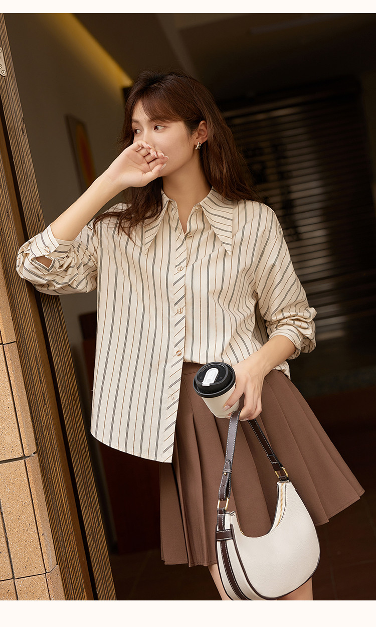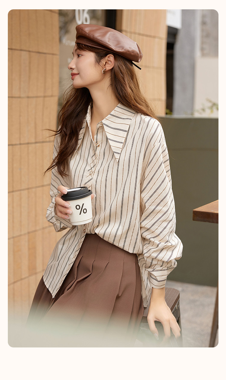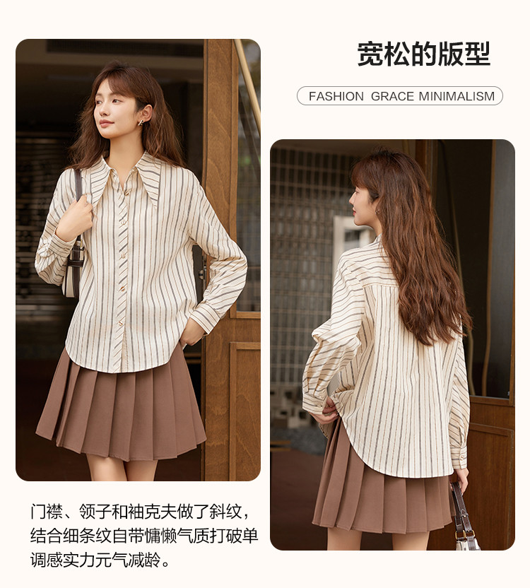 【知识分子】春秋韩系内搭叠穿衬衣女高级感时髦小个子条纹衬衫女 725889