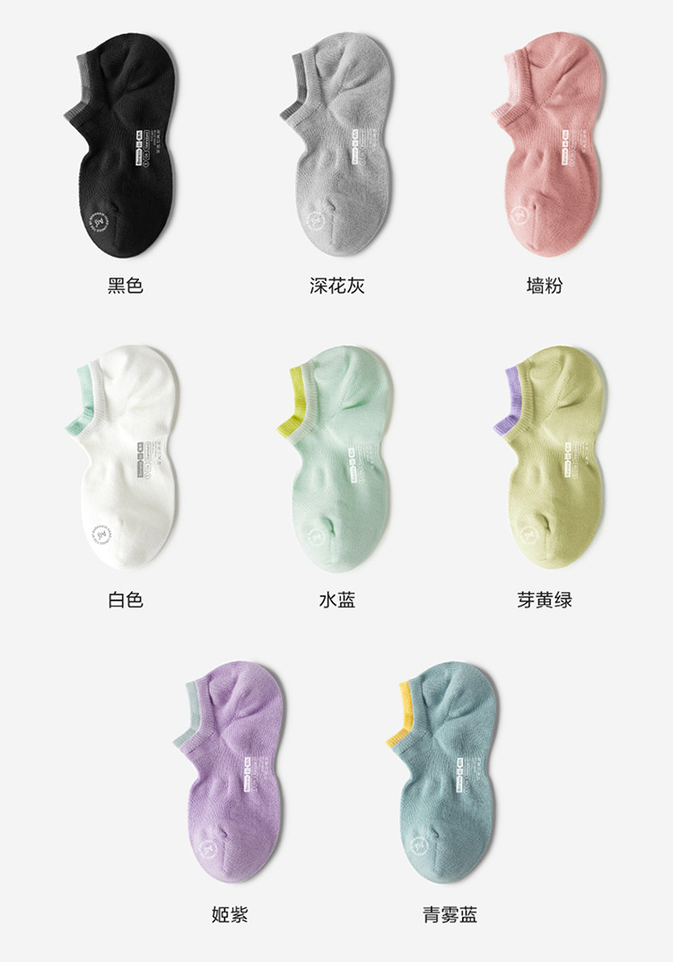 商品名称:506S女士防滑不掉跟浅口袜子潮吸汗防臭运动短袜春夏3双 008197