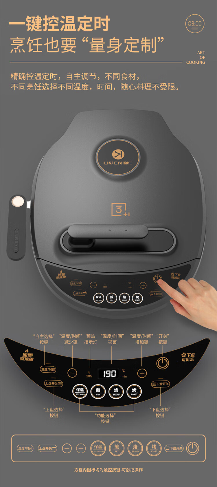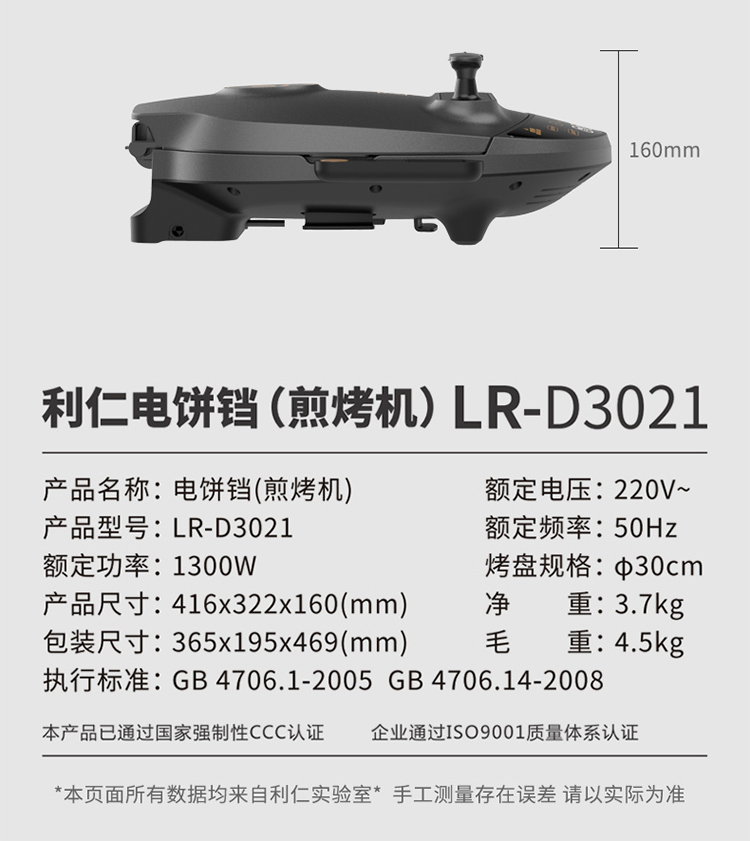 商品名称:Liven/利仁30cm上下盘可拆卸电饼铛LR-D3021
